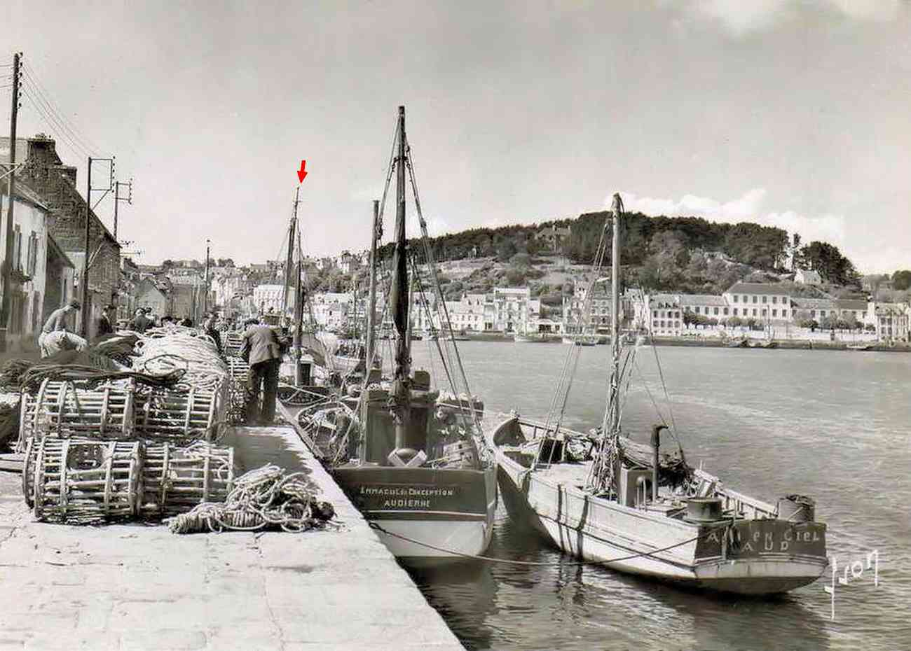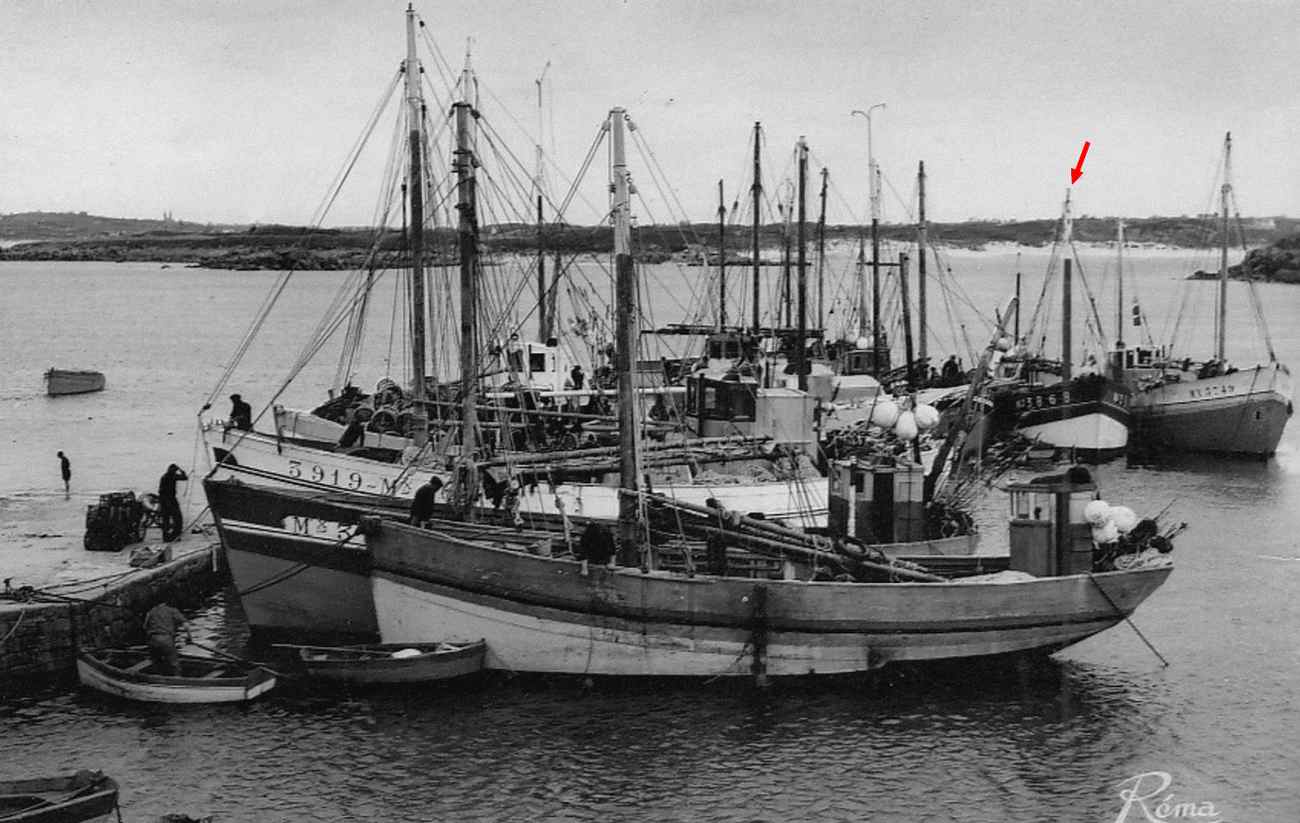 "Reine d'Ys" a été vendu au quartier de Morlaix en 1959 ( MX 3968 ) . Il pratiquera la pêche aux casiers à partir de Moguériec |