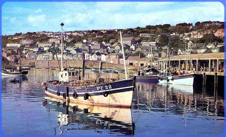 Saint Ives est situé en Cornouailles britannique, sur la côte nord de cette région la plus à l'ouest de l'Angleterre ( Lands End ). Ce petit port offre un bon abri lors des coups de vent sévissant en mer d'Irlande et les bateaux bretons pêchant la langouste, par ailleurs abondante dans ces parages, venaient s'y réfugier ou se ravitailler. Les premiers à fréquenter Saint Ives furent Joseph Le Goff, Louis Trépos et Raphaël Ansquer. A certaines époques il n'était pas rare de compter une bonne douzaine de bateaux au mouillage de Saint Ives, c'est principalement les langoustiers "de Pors Poulhan" et "du Cap" qui étaient des habitués de Saint Ives, ce qui n'empêchait pas quelques camarétois ou roscovites d'y venir également.