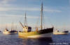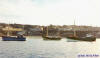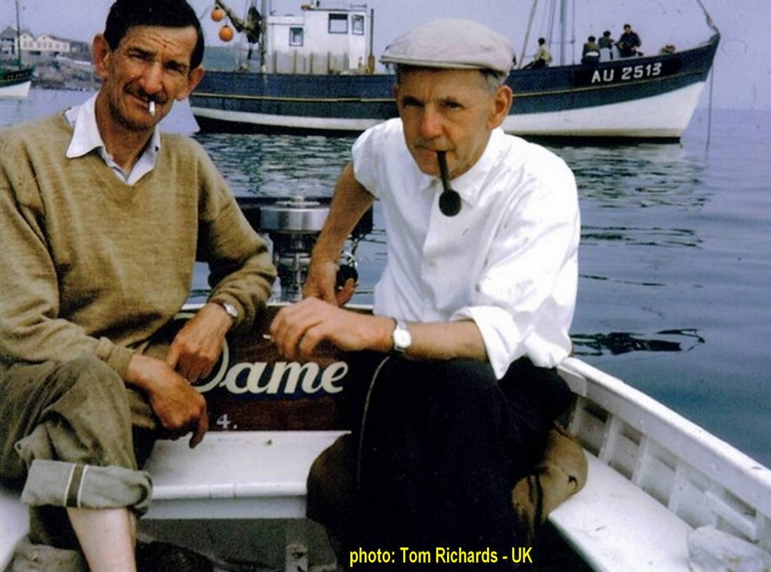 photo aimablement communiquée par Tom Richards où l'on voit son père ( fumant la pipe ) avec un ami, dans la baie de St Ives, en arrière plan "La Barque d'Yves".