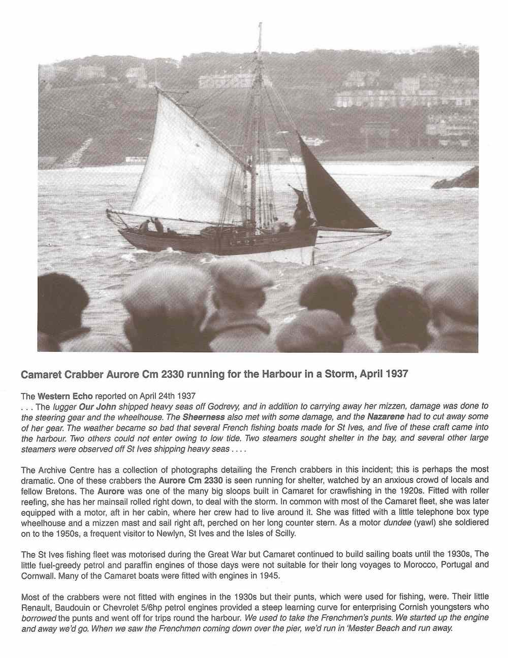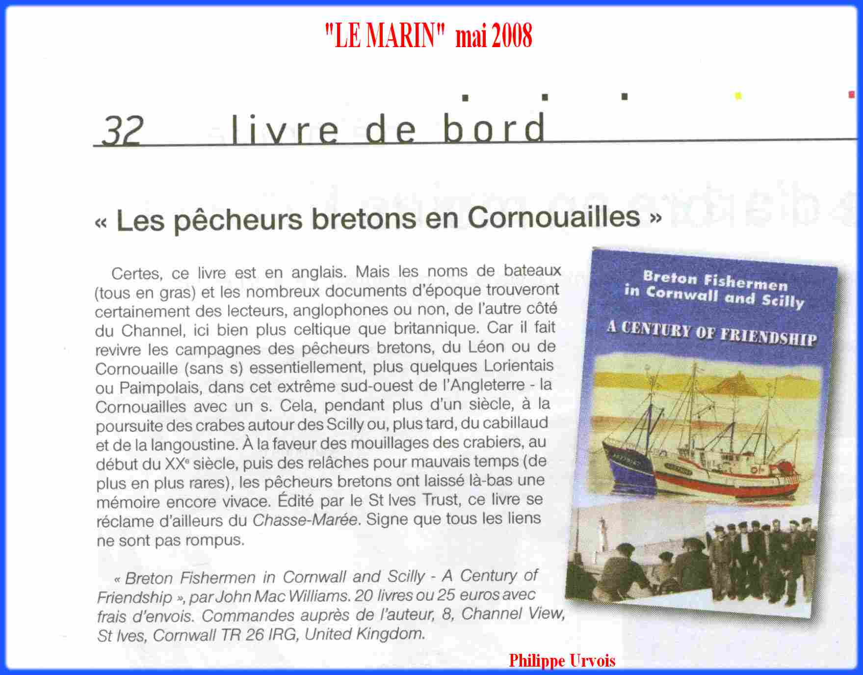 John Mac Williams a rédigé un petit fascicule ( en attendant de produire un ouvrage plus important ) sur sa bonne ville de Saint Ives, dans lequel il fait une large place aux marins et bateaux bretons. Ci dessous quelques pages de son livret