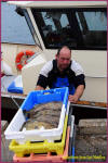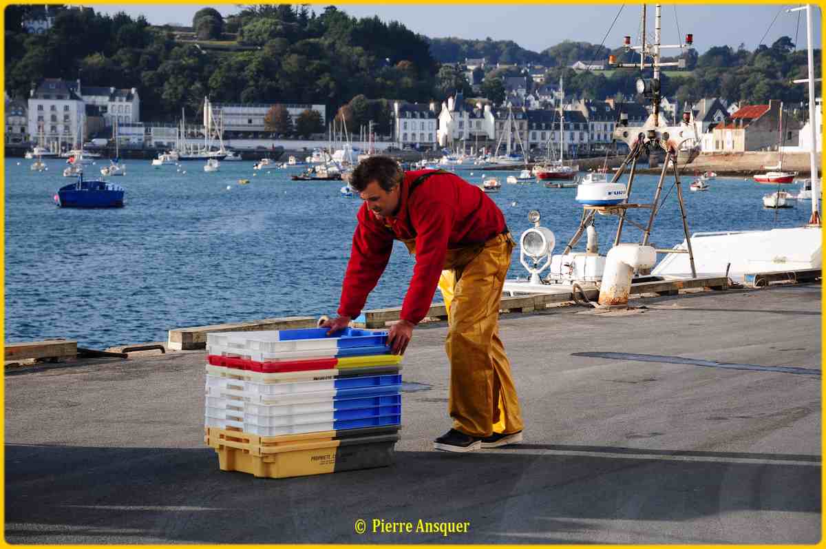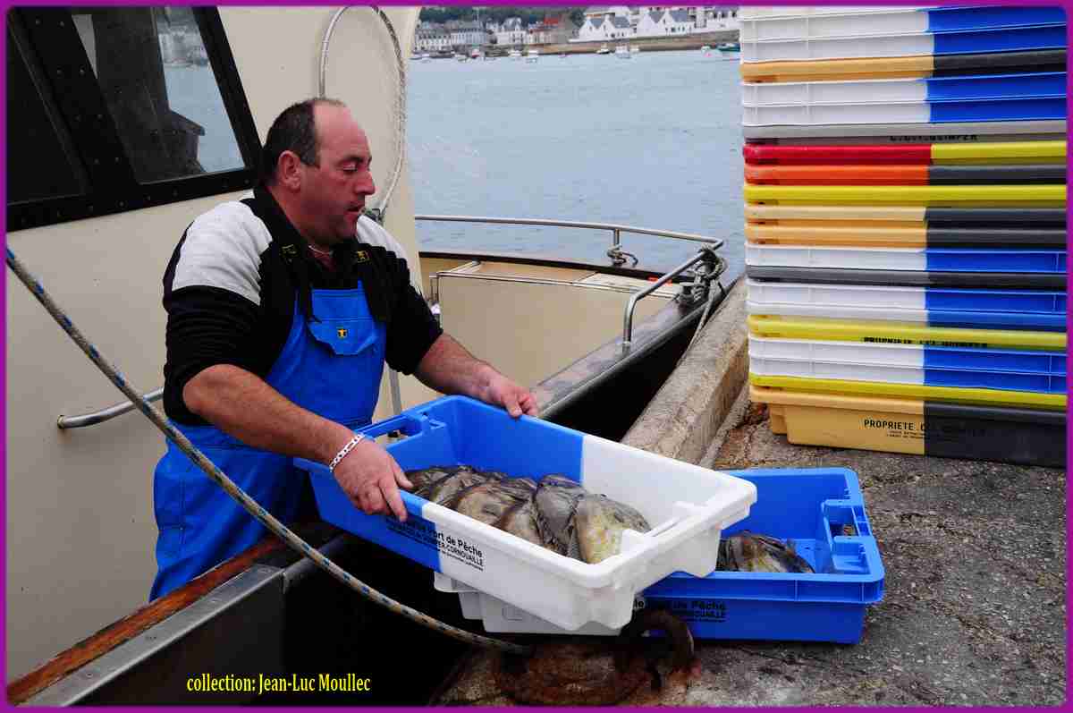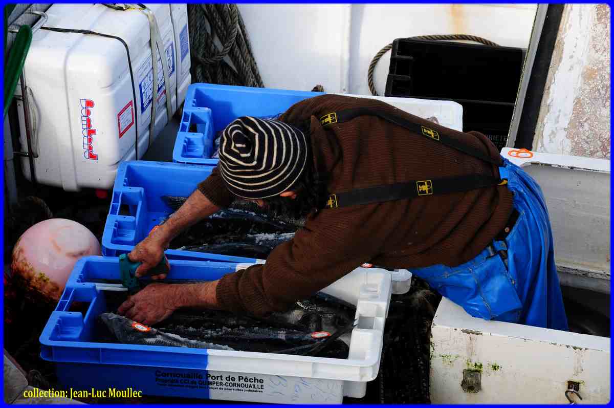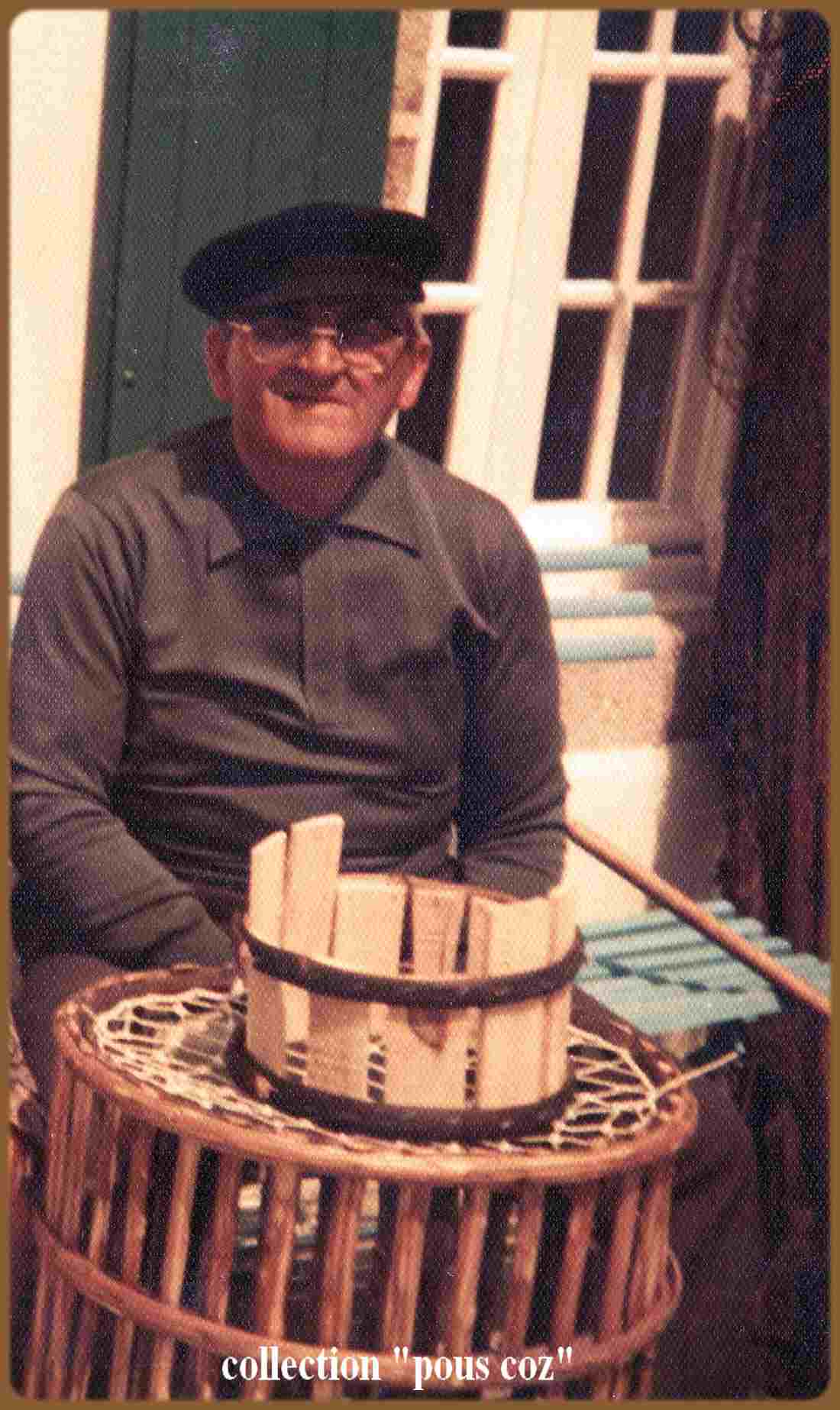 Vinoc Le Borgne l'ancien patron du Providens Doué, père de Bernard Le Borgne ( San Julian ), vient de terminer un casier, il ne reste plus que la goulotte ( ar Gouken ) à installer, la goulotte permettait aux langoustes d'entrer dans le casier mais les empêchaient ensuite d'en sortir, par la suite les goulottes seront confectionnées industriellement, en plastique, puis les casiers... Vinoc Le Borgne était surnommé Pous Coz ►