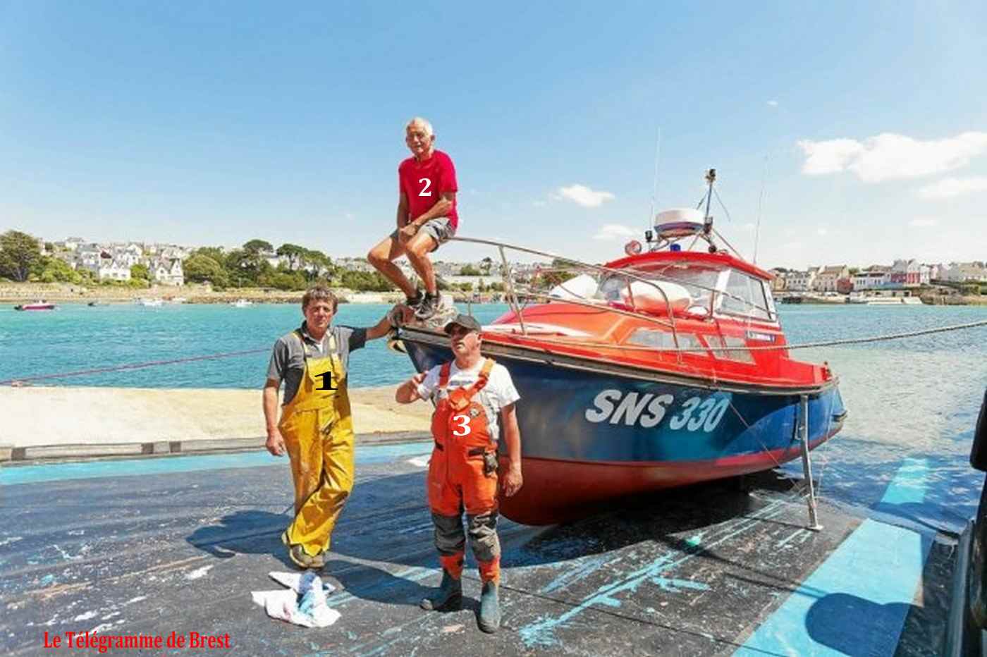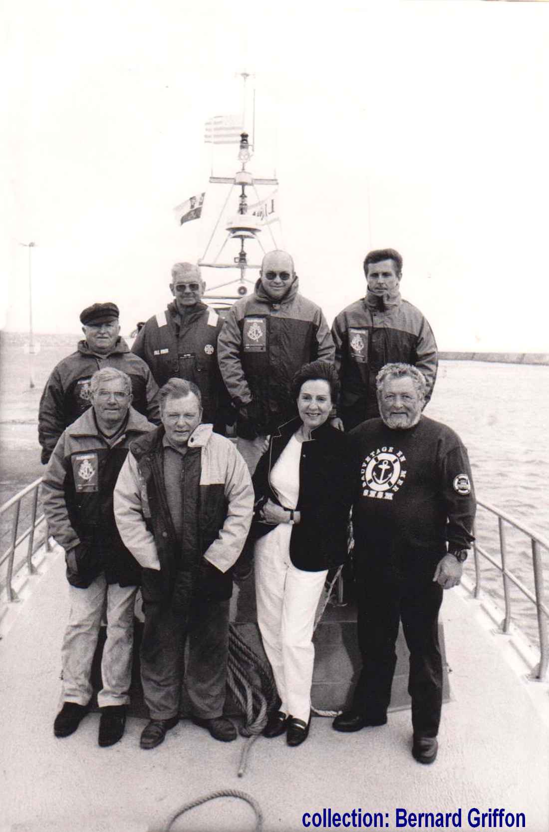 mécanicien/radio Jean-Philippe Fouquet (2) canotier Joseph Guilcher (3) sous-patron Jean-Louis Milliner (4) canotier Alain Quillivic (5) syndic des gens de mer à Sein Guénolé Milliner (6) treuilliste Lec Richard (7) patron Clet Chevert (8) canotier |