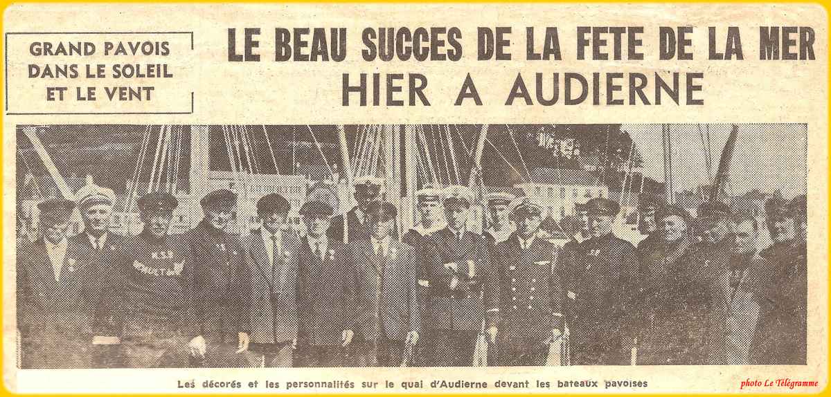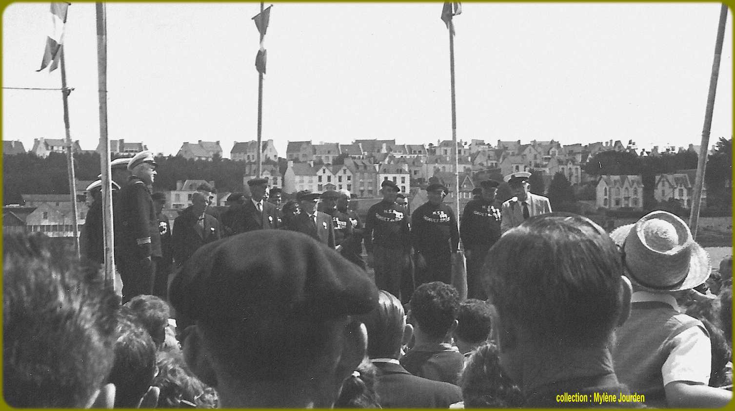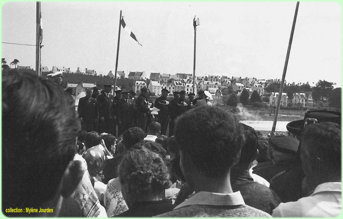 | Août 1963, cérémonie à Audierne à l'occasion de la fête de la mer, avec une délégation de la marine nationale |