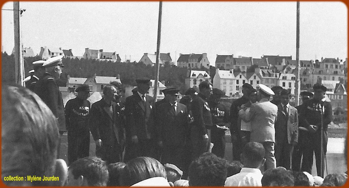 eté 1963, cérémonie de remises de médailles de sauvetage par le Cdt Jouen, président de la station d'Audierne, à noter la présence de deux jeunes lauréats ( 1ere photo de G ) |