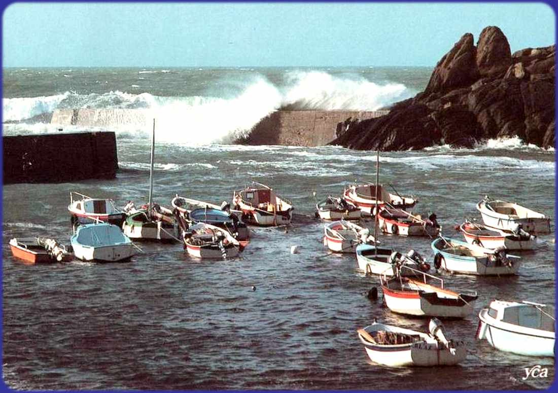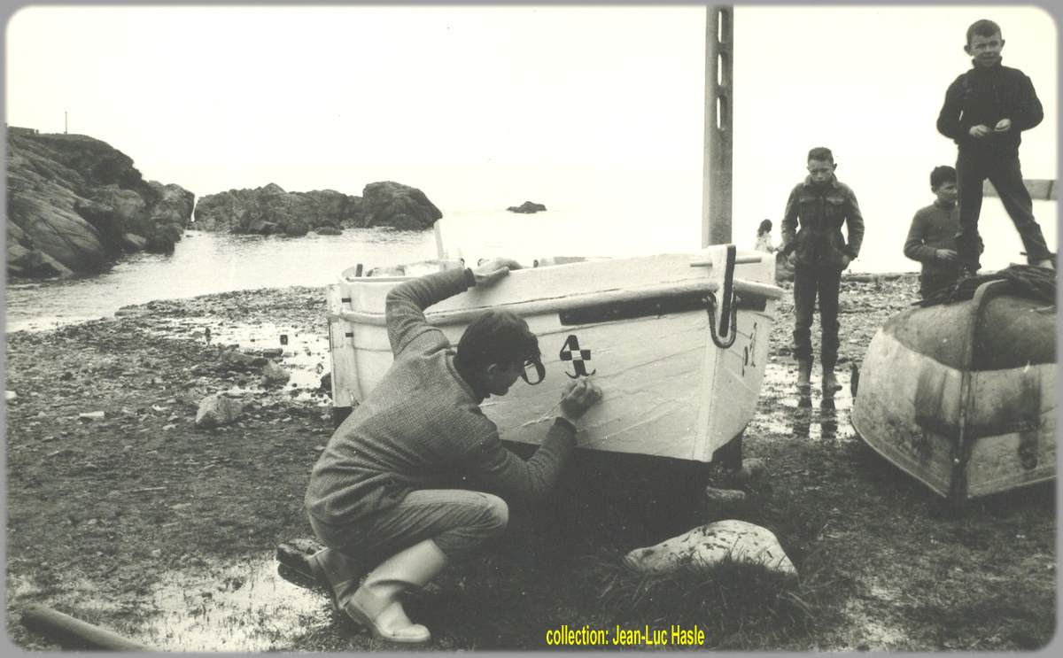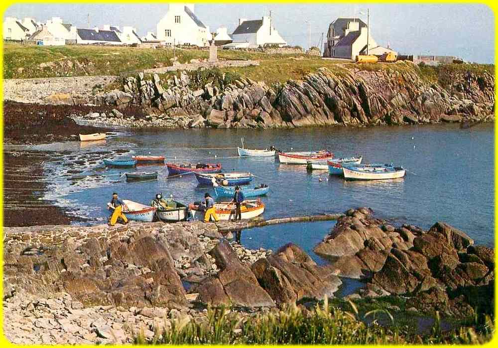 Le port dans les années 50, "L'Oisean Blanc" de tonton Fanch est presque seul au mouillage |