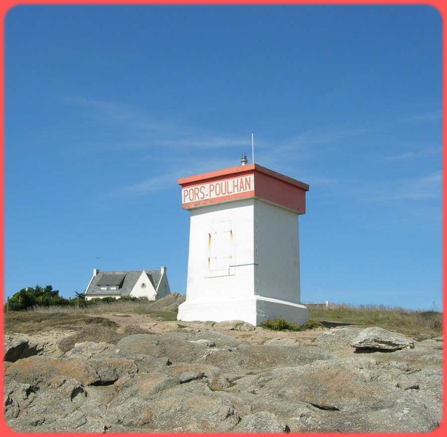 Commencée le 24 août 1926, la tourelle d'une hauteur de 5 m fut achevée en d'année 1926, le matériel d'éclairage fut installé en avril 1927 et la mise en service du phare eut lieu le 16 mai 1927, ce n'est qu'après la guerre 39/45 que le phare de Pors Poulhan fonctionna à l'électricité |