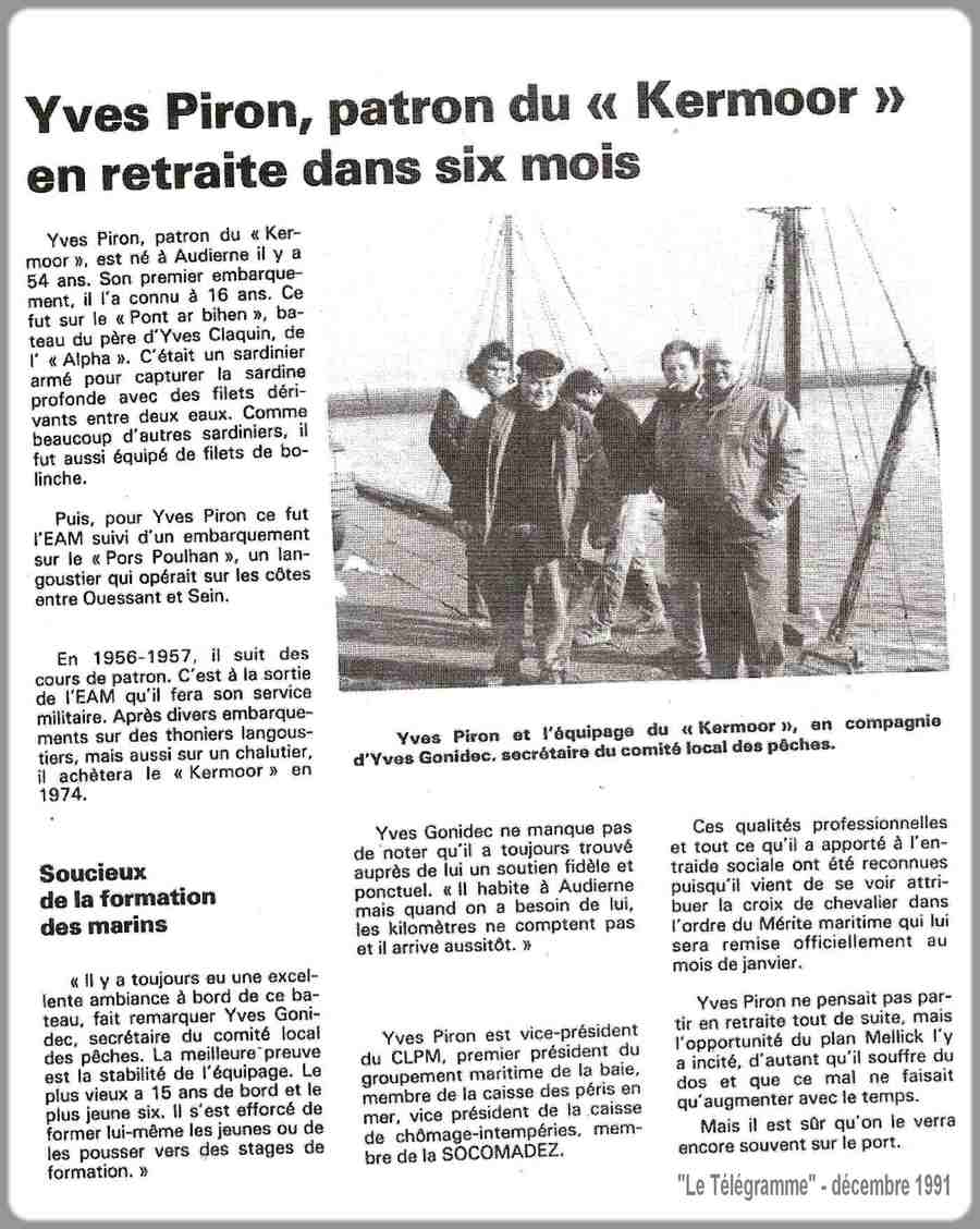 | décembre 1991, désarmement de Kermoor à Douarnenez, Yves va céder son bateau au port musée |