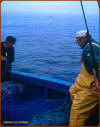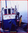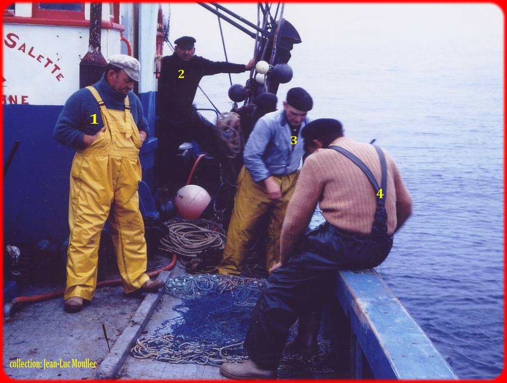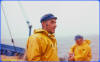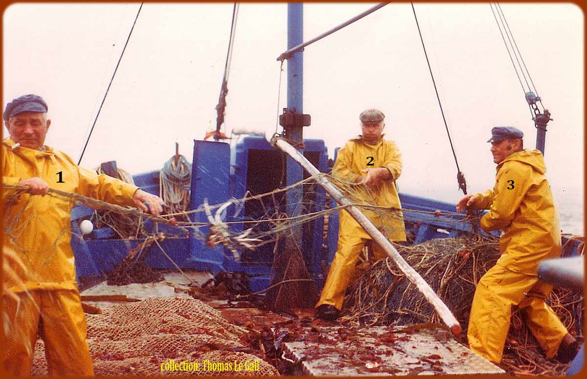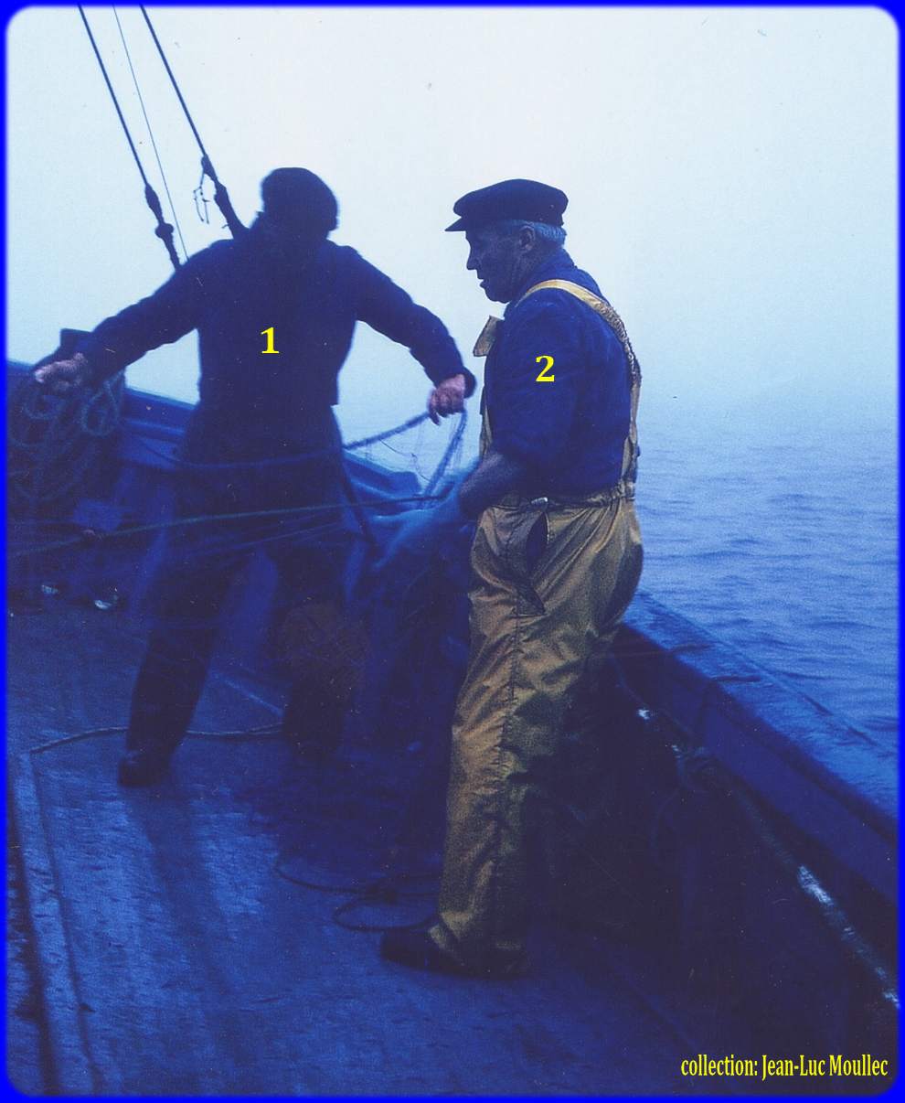 Marcel Pellaë à la passerelle Marcel et Vinoc Pellaë étaient les deux co-propriétaires du bateau, c'est son frère Vinoc qui était le patron habituel |