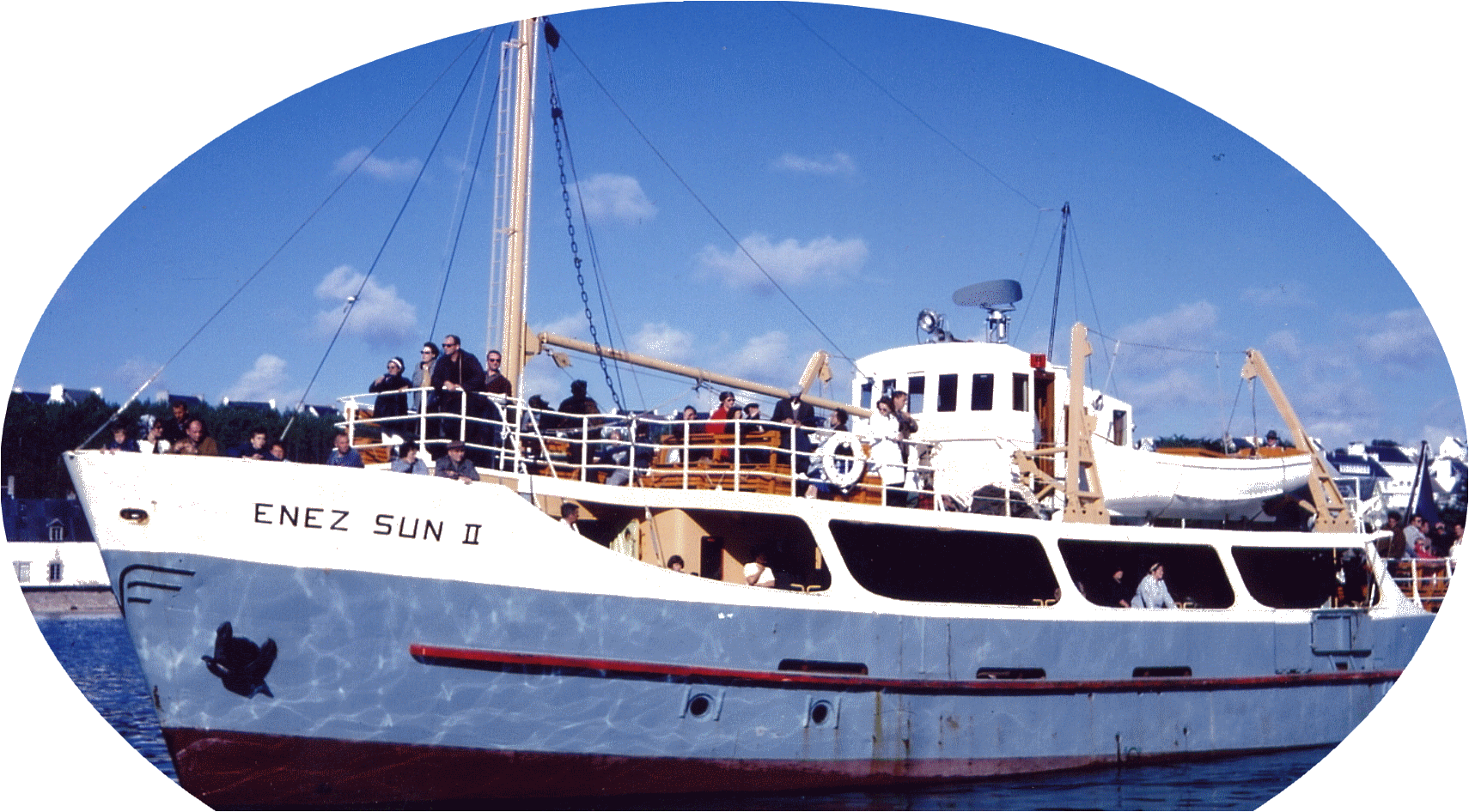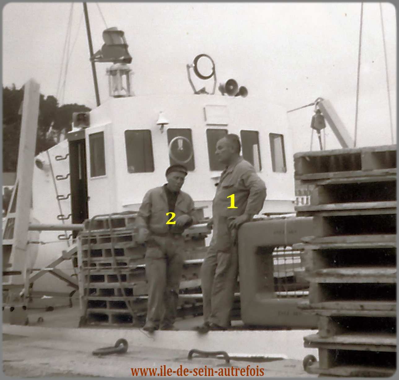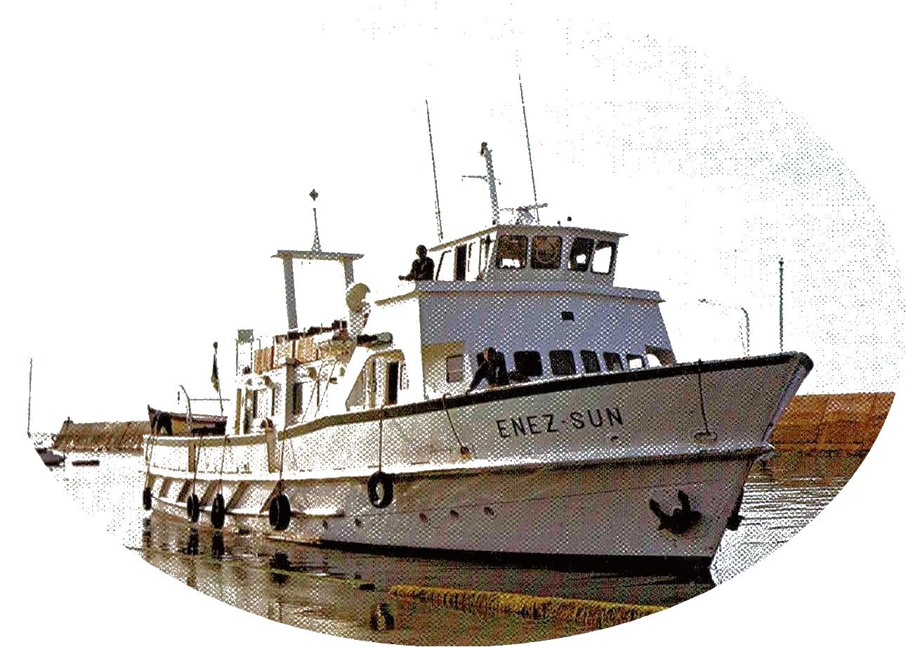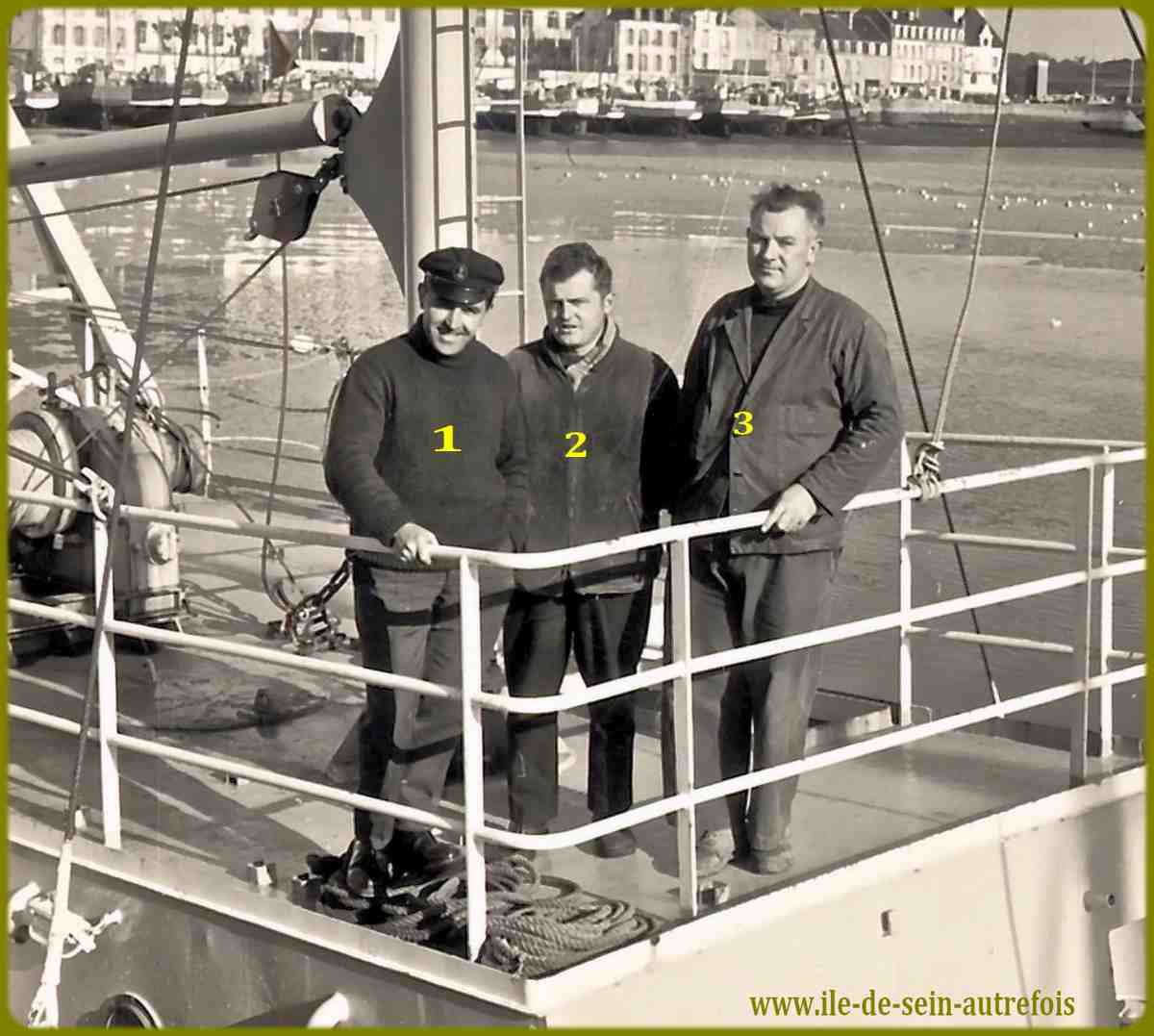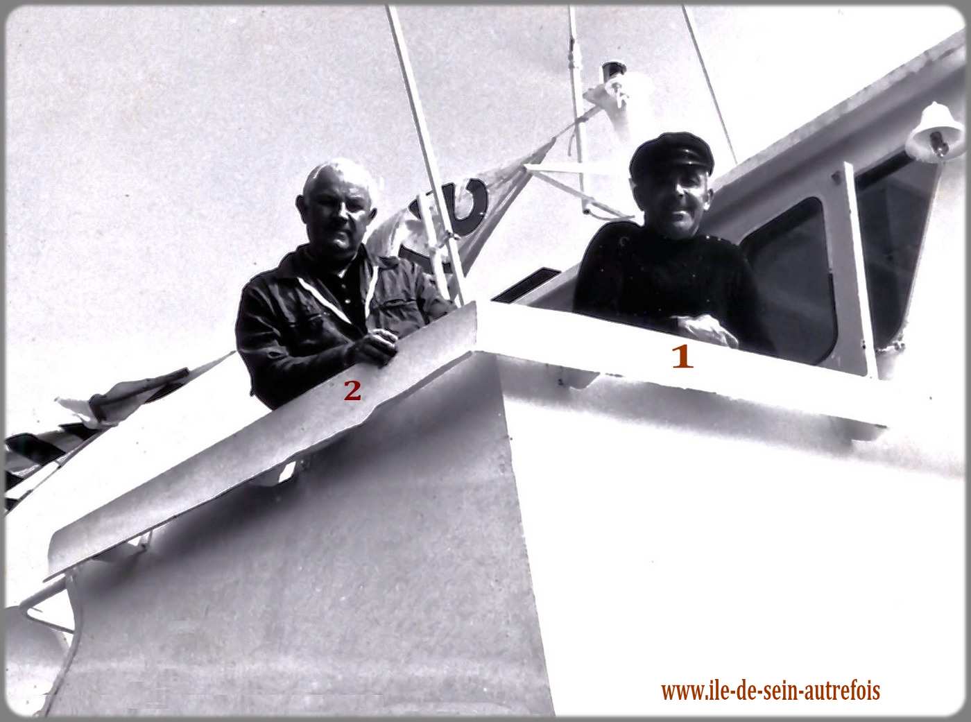 | Vincent Fouquet avait débuté sa carrière en janvier 1950 sur l'Enez Sun gris en tant que matelot, il en deviendra le patron en 1953 jusqu'en 1958. En 1962 il succèdera à Jos Guilcher à la barre du tout nouveau Enez Sun II, l'Enez Sun en fer. C'est tout naturellement qu'au remplacement de Enez Sun II par l'Enez Sun en bois que Vincent assurera avec un grand professionnalisme le commandement de ce nouveau courrier qu'il quittera en 1982 pour prendre une retraite bien méritée après 32 ans de dévouement au service de ses compatriotes et aussi de ces nombreux anonymes qui, dès les beaux jours embarquaient à la découverte de l'île. Il est parti en 2010 pour une ultime traversée en laissant le souvenir d'un grand marin dévoué au service public. |