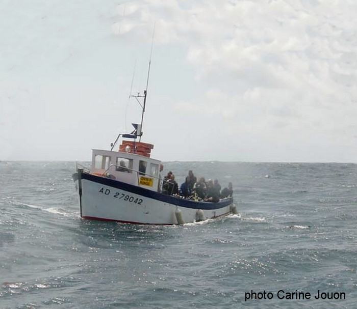 Après une carrière à la pêche,"Bass Loch" va, à partir de 1980, continuer à sillonner la baie d'Audierne pour le compte du club de plongée cher à Jo Evenat, "Les Plongeurs du Cap" |