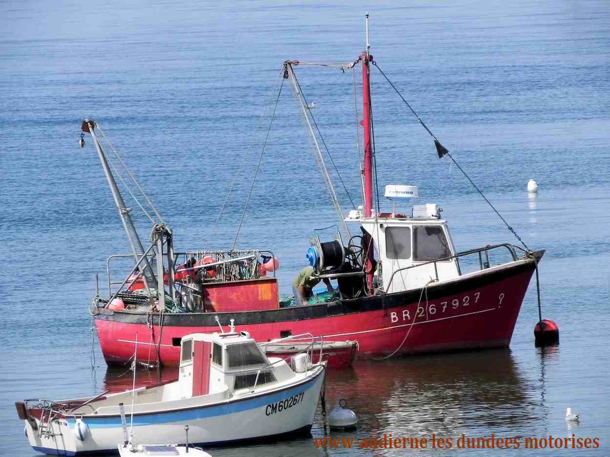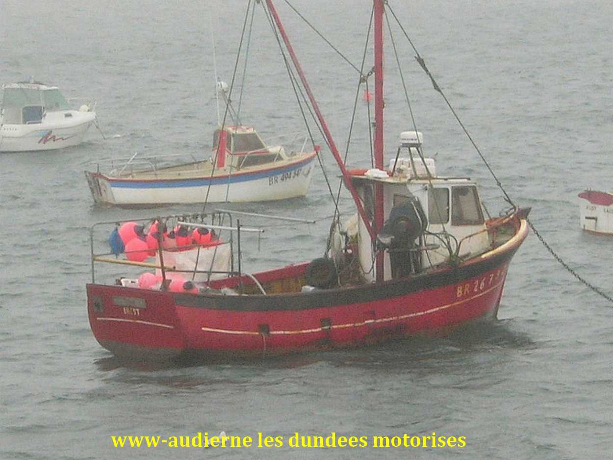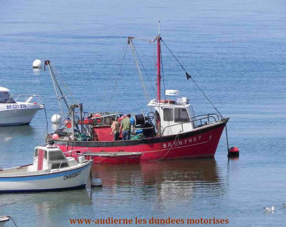 | au Conquet deux anciens audiernais: "Saint Nicolas" en rouge au 1er plan, au 2e plan (canot bleu) "Petit Poisson", ex "Robert Pierre" à Audierne | |||||