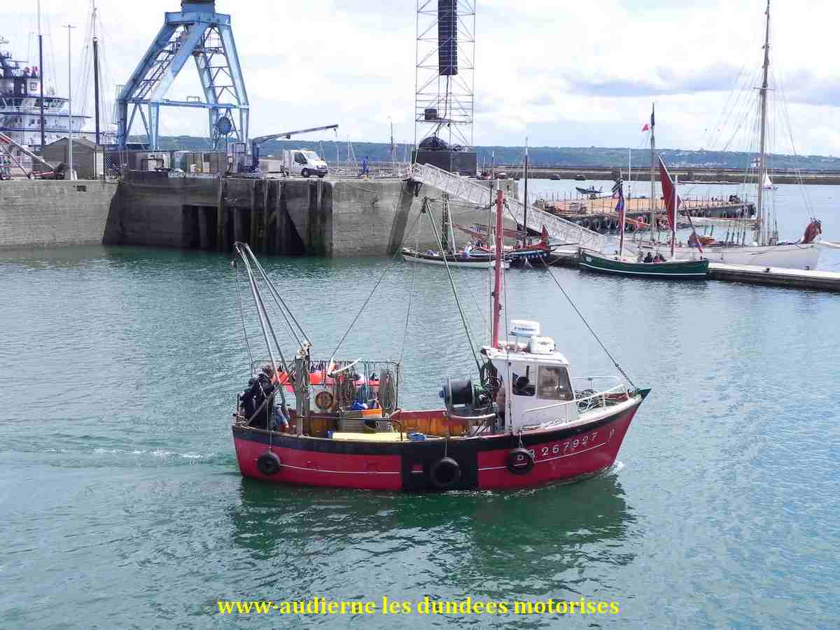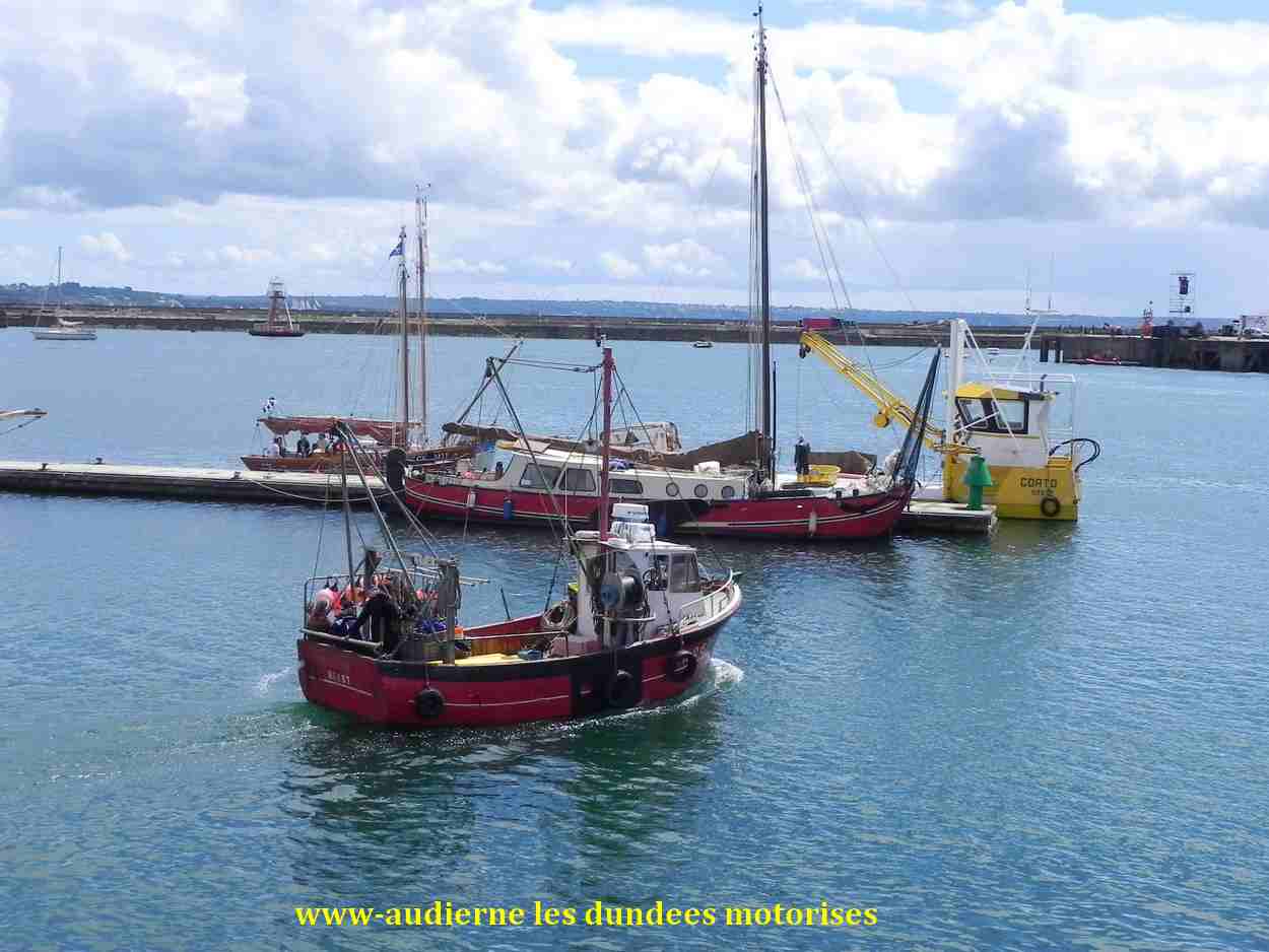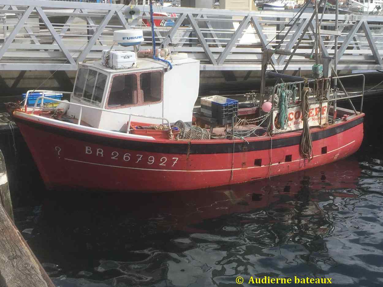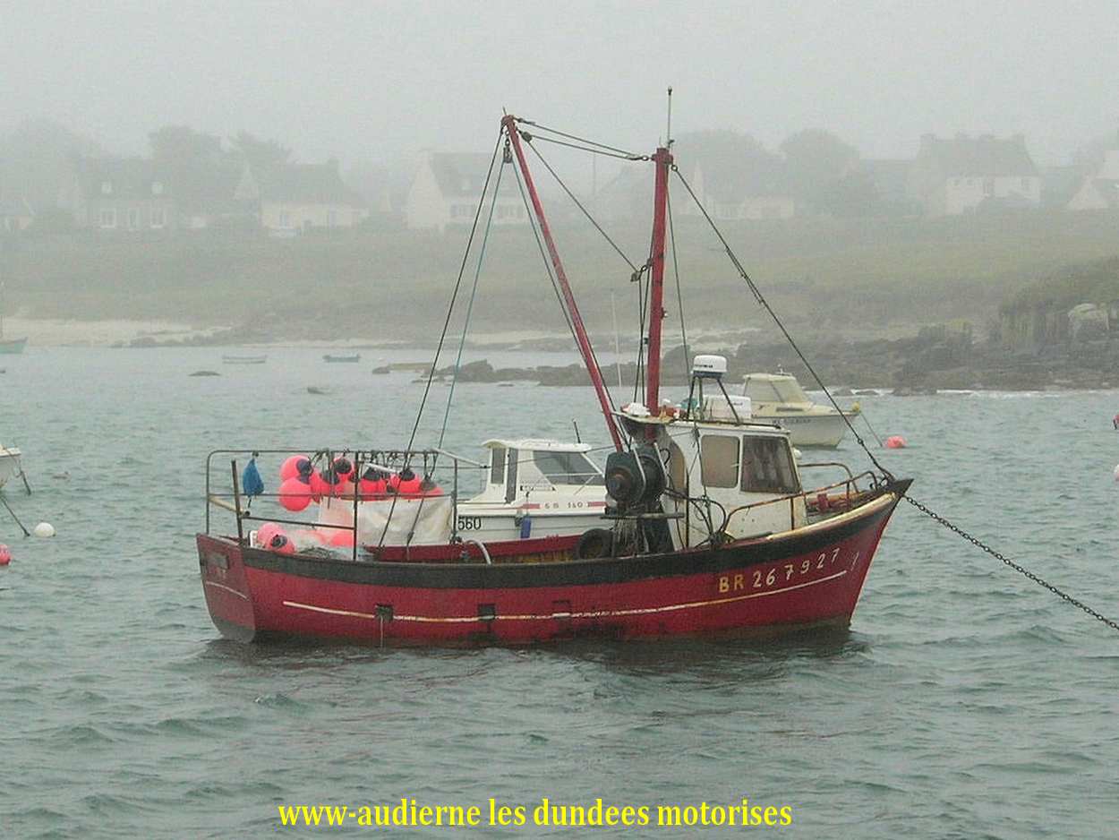 | au Conquet deux anciens audiernais: "Saint Nicolas" en rouge au 1er plan, au 2e plan (canot bleu) "Petit Poisson", ex "Robert Pierre" à Audierne | |||||