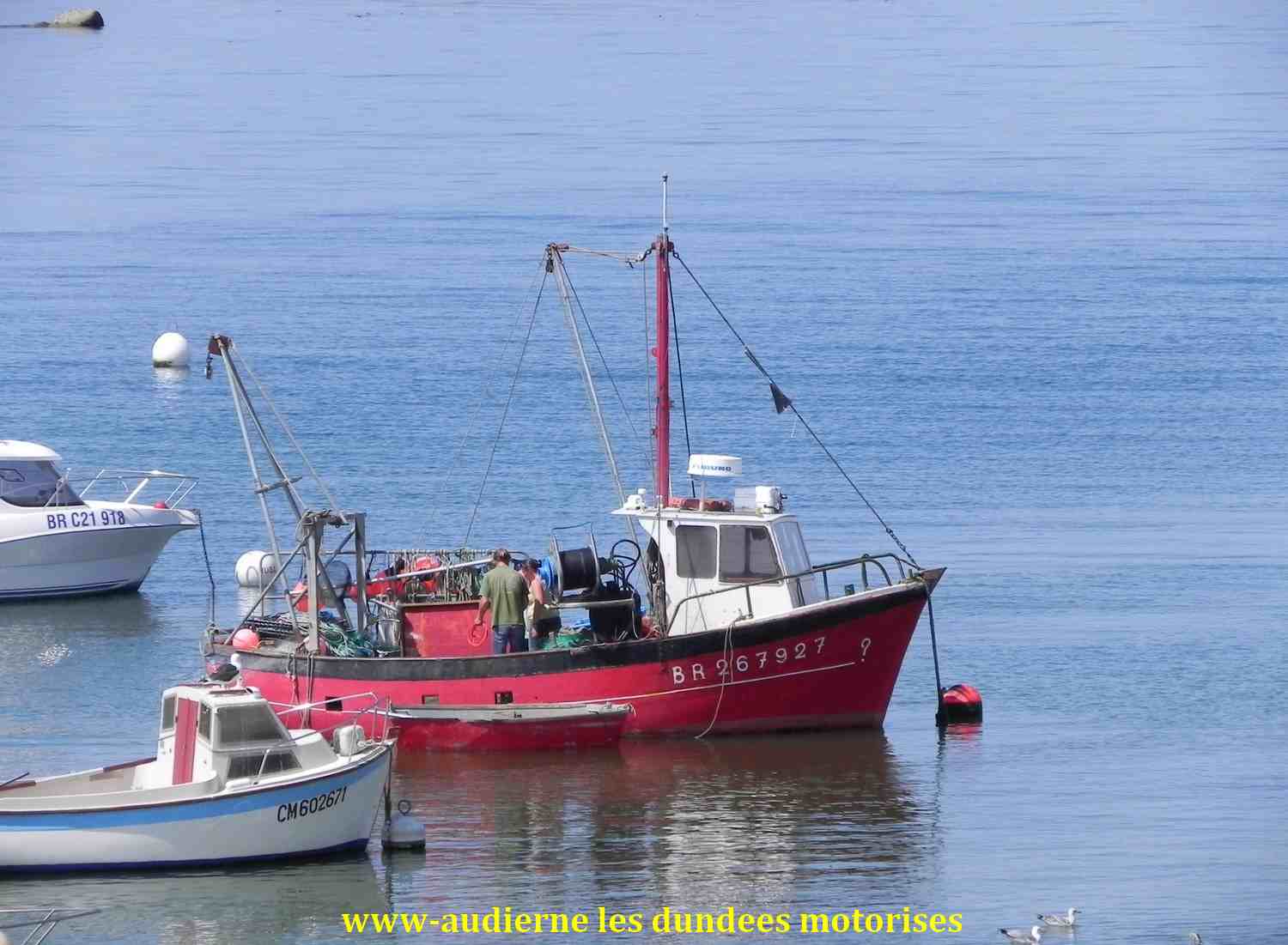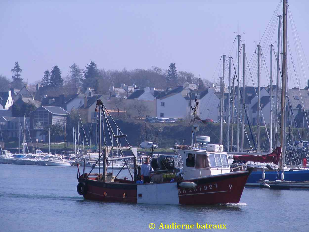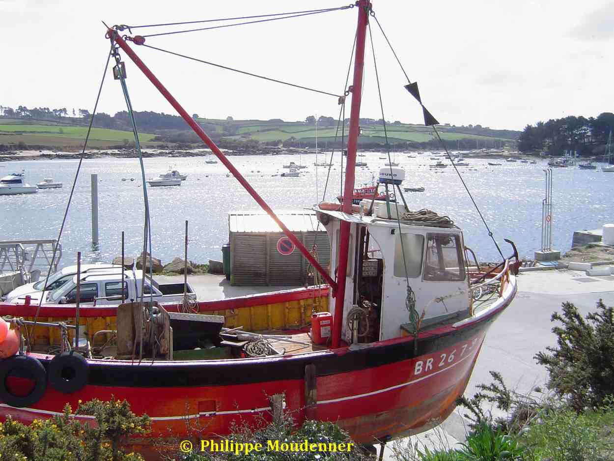 | Durant les mois d'hiver il rejoint le mouillage de Pors Beach ( Logonna Daoulas ) pour être au plus près de la rade de Brest où il pratique la coquille Saint Jacques | ||||