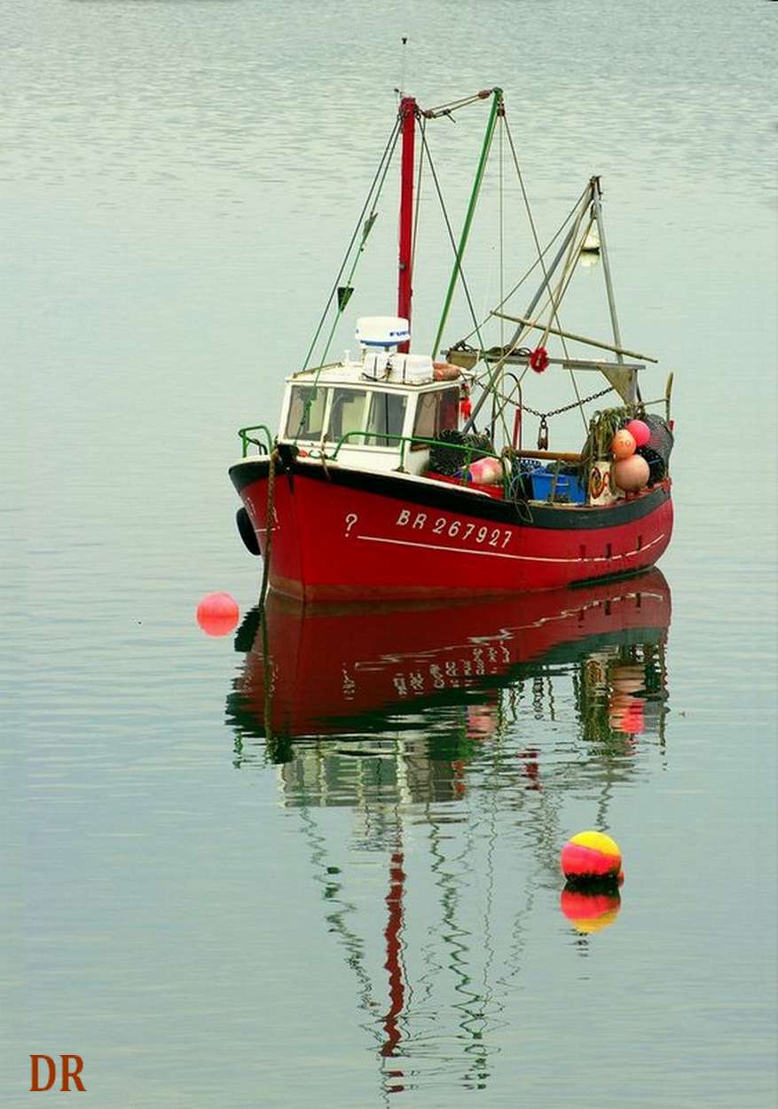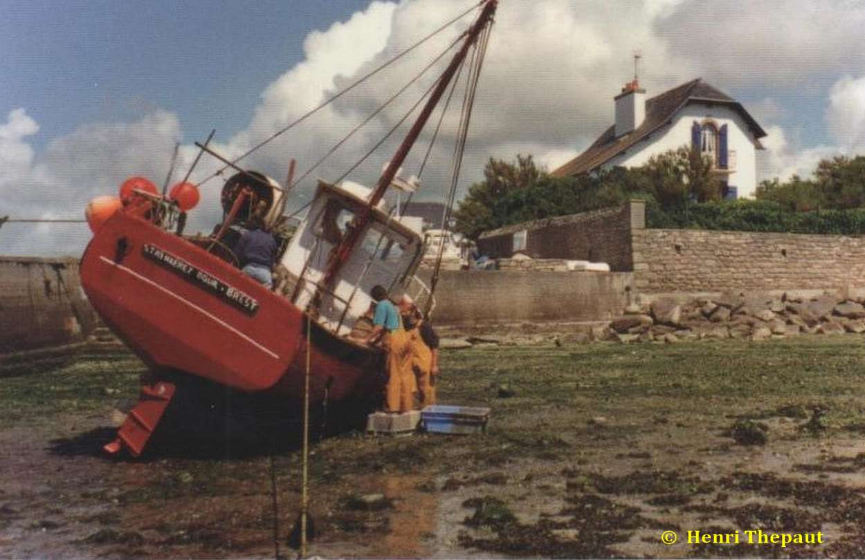| A la belle saison,"Strinkerez Dour" est mouillé dans la baie de Porpaul ( Lampaul Plouarzel ) d'où il sillonne la mer d'Iroise pour mouiller ses casiers et filets. | ||||
