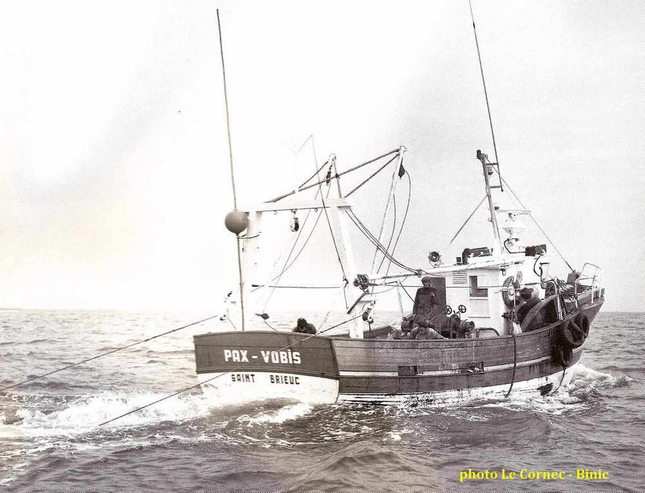 Jos Guilcher qui fut le premier capitaine de l'Enez Sun II à son neuvage, avait repris le nom de l'ancien bateau de son père ( Joseph également ) pour ce deuxième "Pax Vobis" .