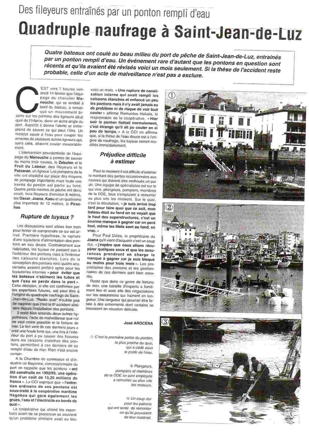 | Joana jouera vraiment de malchance car quelque temps plus tard, il sera encore victime d'un accident dans le port de Saint Jean de Luz |