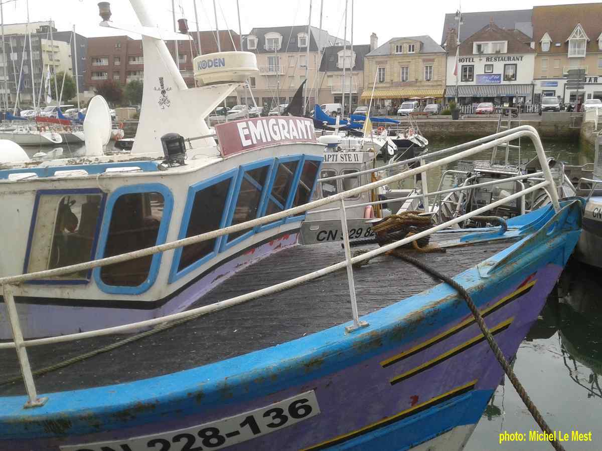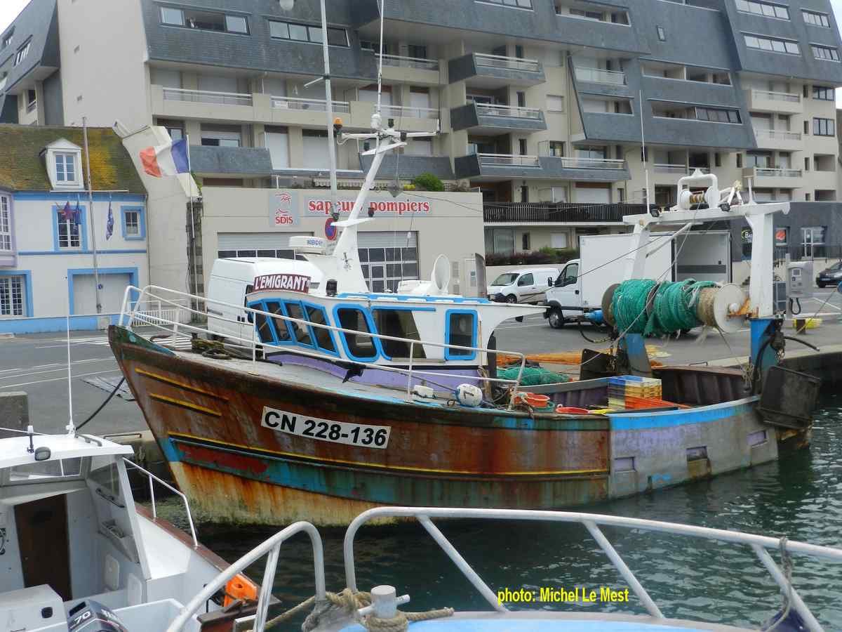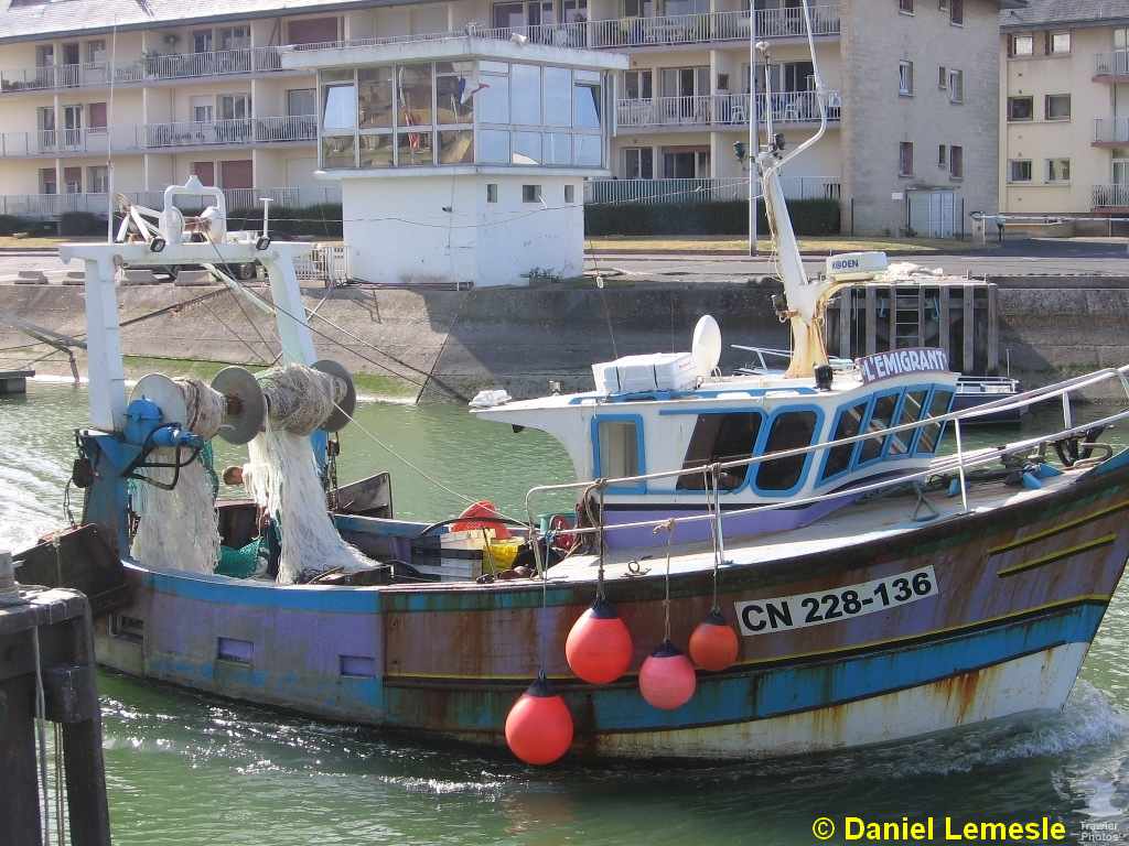 Après avoir vendu "Typhon" au quartier de Paimpol, Jean-François Follic a fait contruire Emigrant avec lequel il fera de nombreuses campagnes de coquilles Saint Jacques qui l'amèneront jusqu'aux ports normands du Calvados et de Seine Maritime |