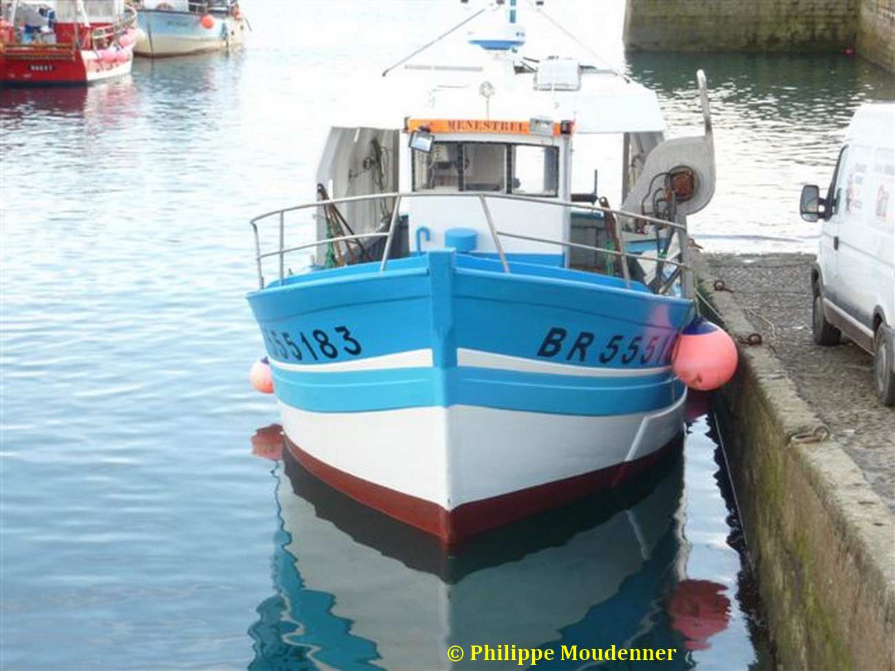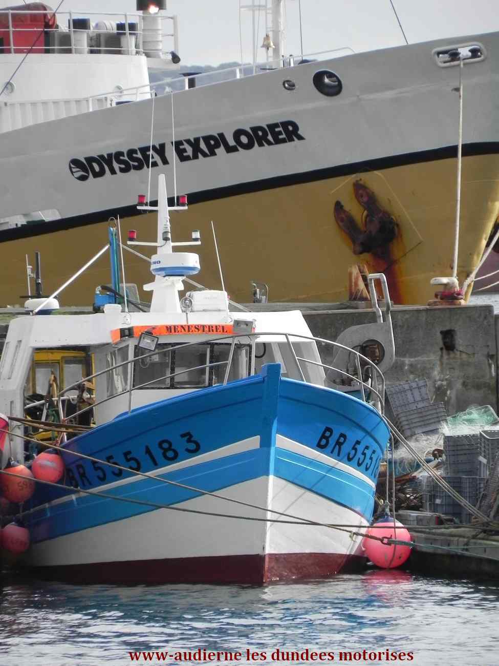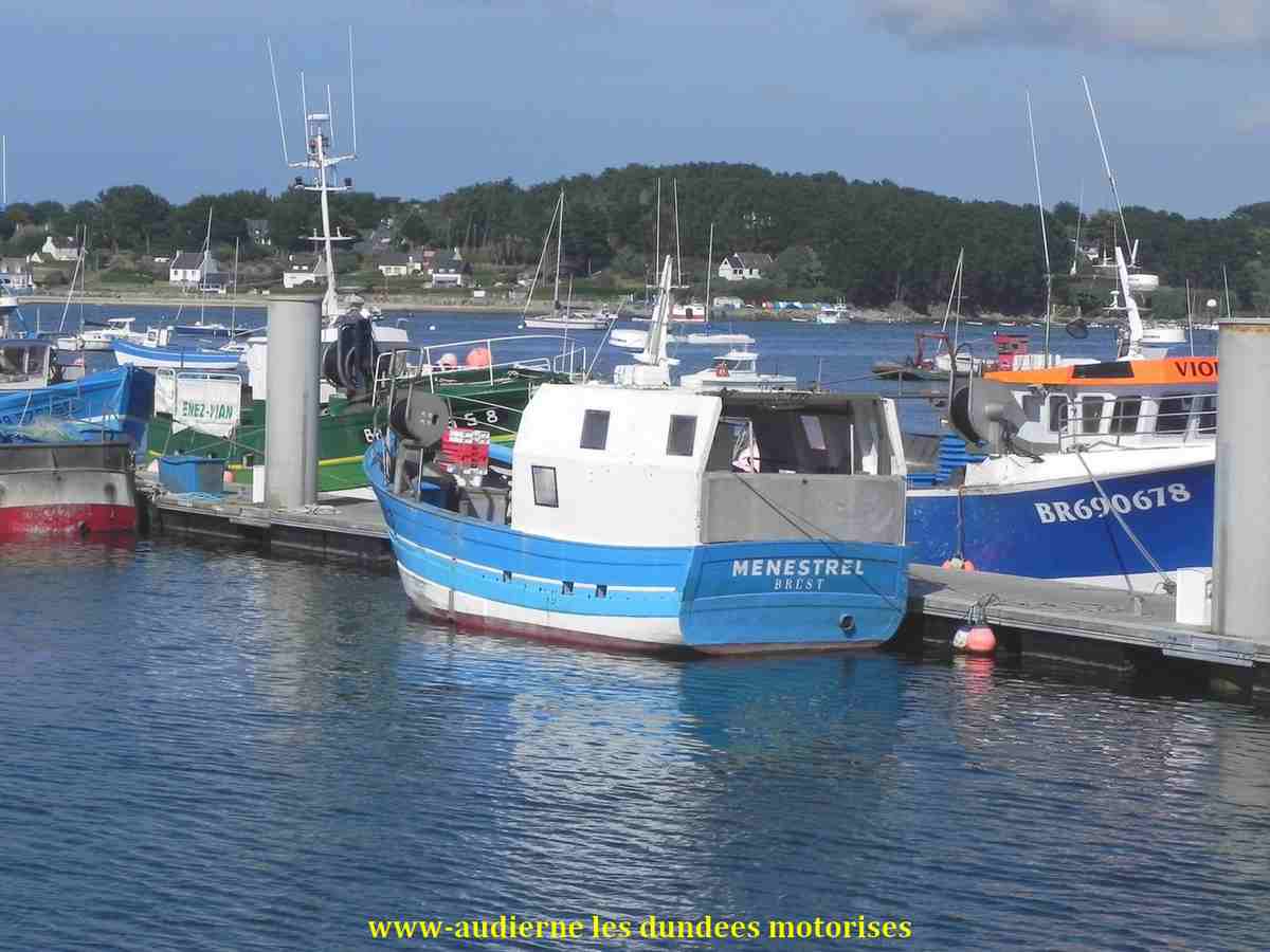 | "Menestrel" venait du quartier du Guilvinec. Après quelques années d' activité à Audierne, à l'aube de ses 25 ans de navigation, il est retourné à son quartier d'origine en fin d'année 2006 où il n'aura fait qu'un bref passage car il est maintenant immatriculé au quartier de Brest et basé à l'Aber Wrac'h |