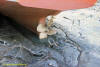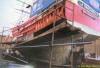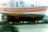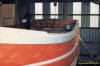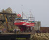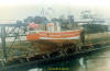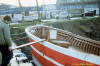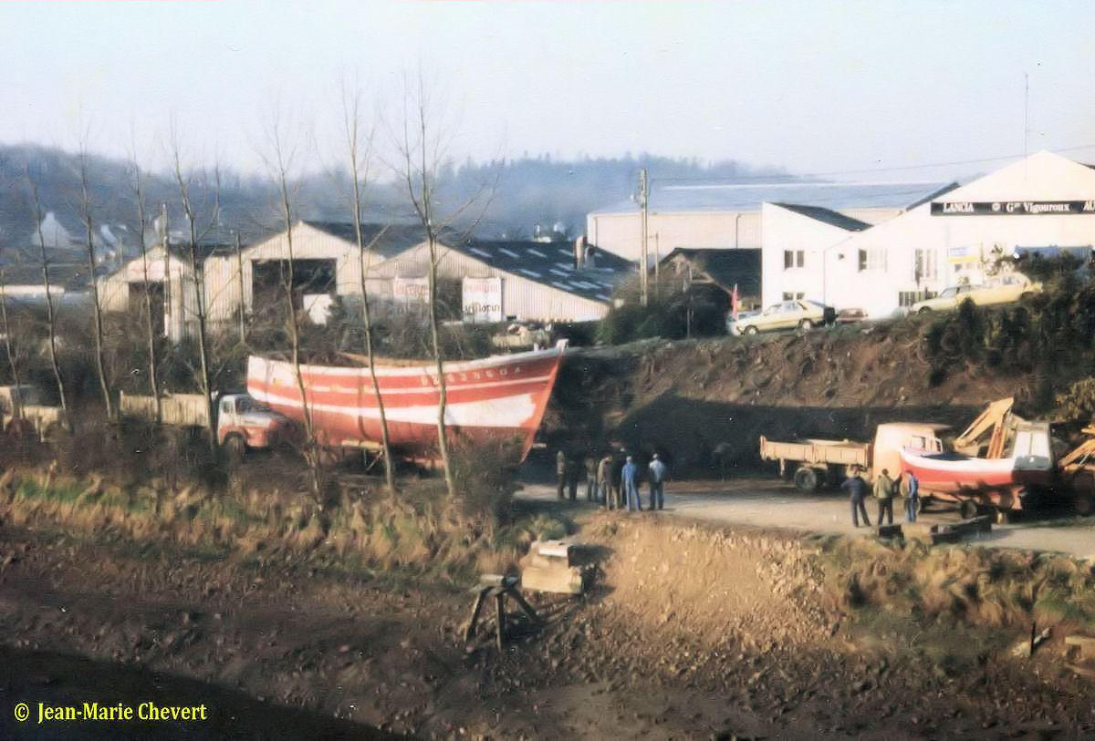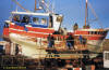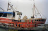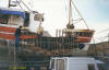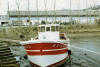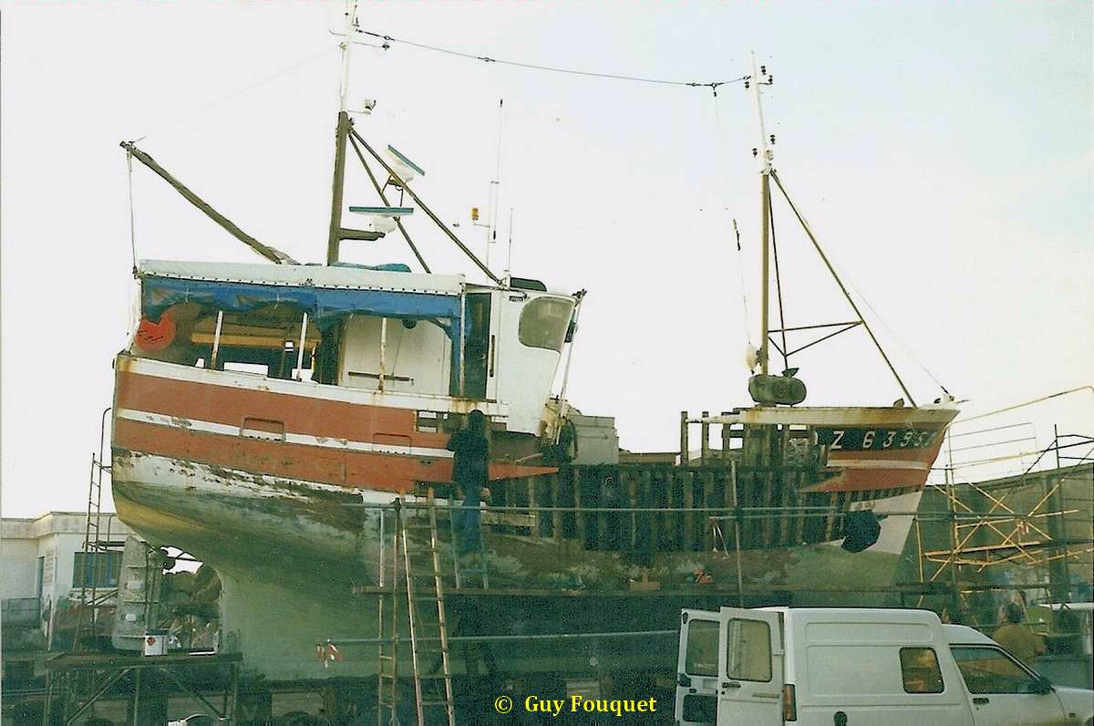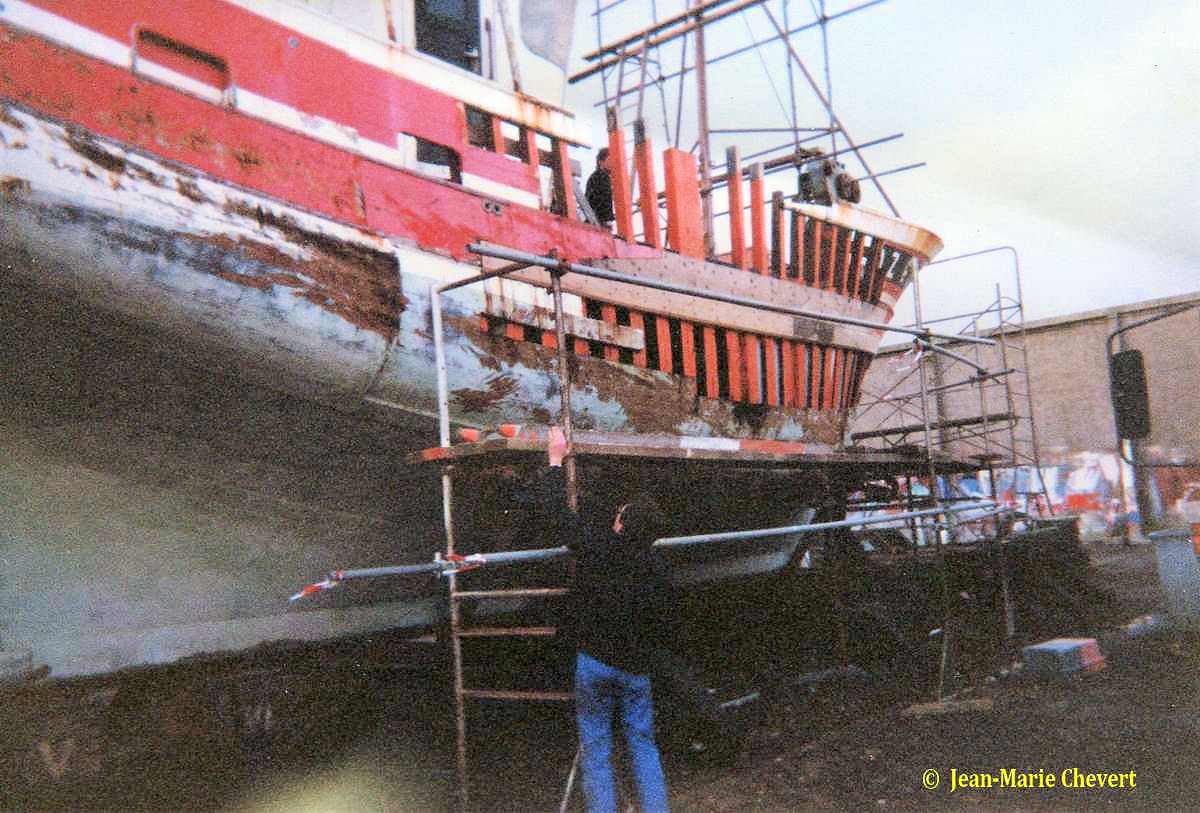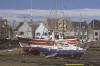 sur le slipway de DZ, après la tempête de décembre 1998, qui vit La Barcarolle rompre son mouillage dans le port de Sein, on peut se rendre compte de l'ampleur des dégâts... |