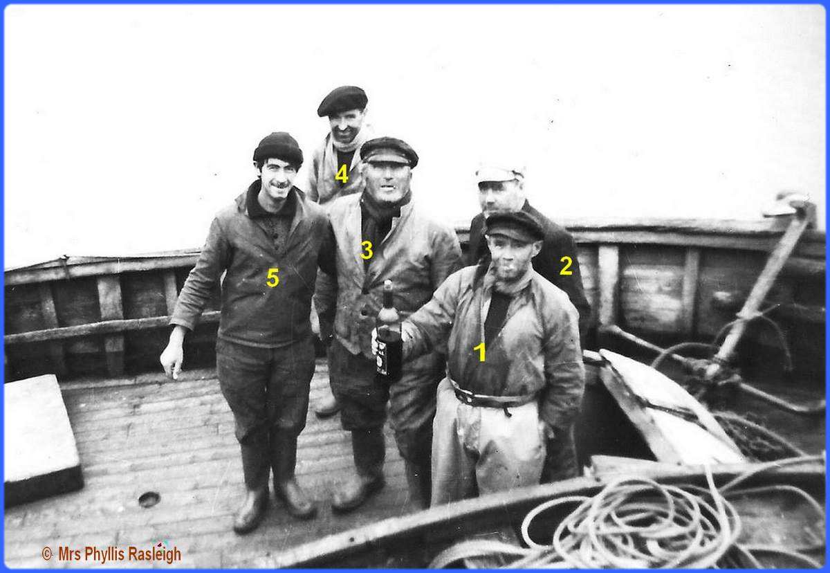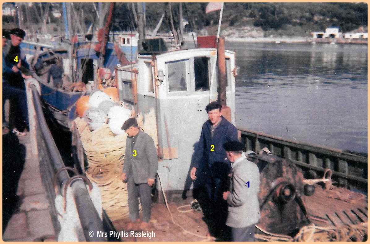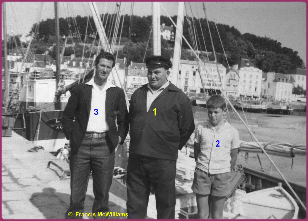 patron (1) avec son fils (2) et William Bennets (3) un ami, patron pêcheur anglais |
