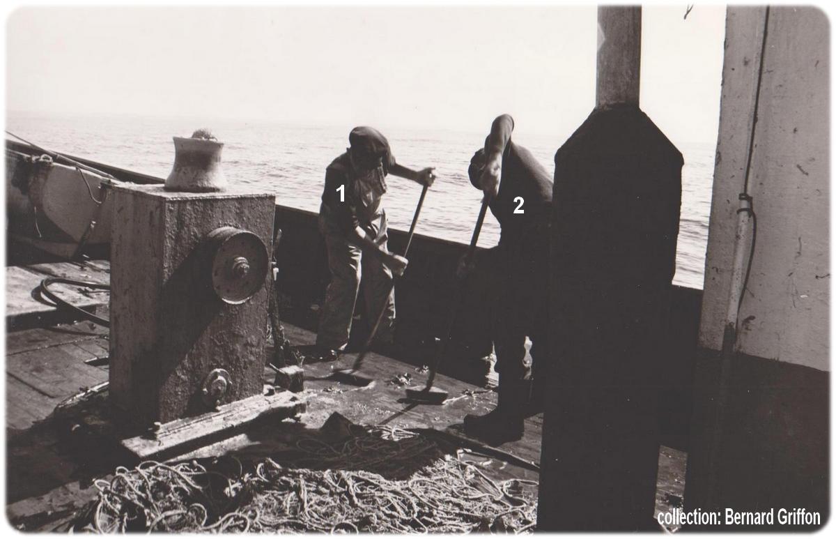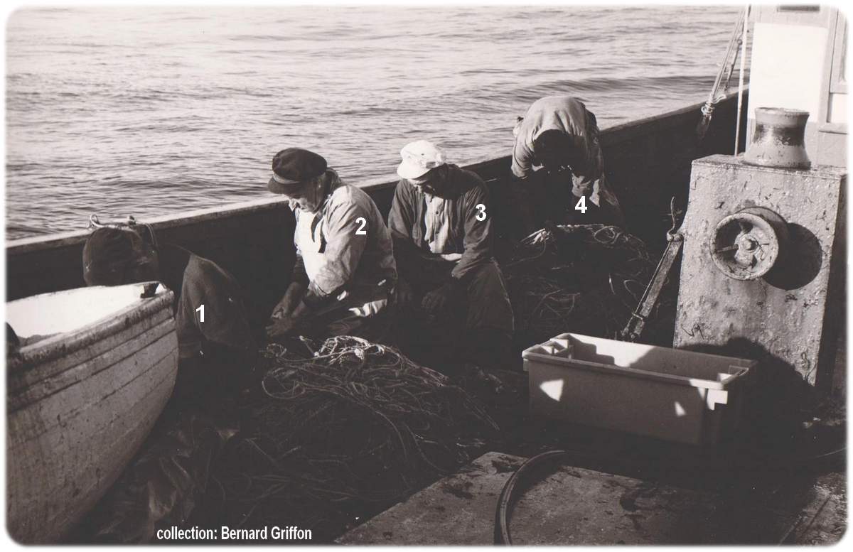1: Yves Moigne 2: Jacques Trividic (patron) 3: Jean Mens 4: X ( caché par le seau ) 5: Guillaume Rivier (baissé) |