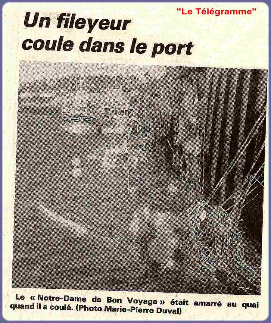 Vers la fin de son activité à Audierne, "ND du Bon Voyage" coula, alors qu'il était à quai à Poulgoazec, il fut renfloué mais cette mésaventure abrégea sa carrière