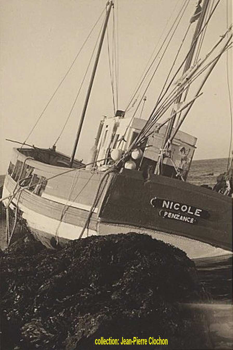 Raphaël Ansquer avait vendu "Nicole" en mai 1965 à Richards Barhow, patron pêcheur anglais, qui l'exploitait à partir de Penzance, mais venait régulièrement vendre sa pêche à Audierne où les cours étaient meilleurs qu'en Angleterre. C'est au cours de l'un de ces voyages que le bateau s'est échoué au sortir du chenal de "La Helle" la nuit du 2 au 3 nov 1965, sans heureusement faire de victimes. |