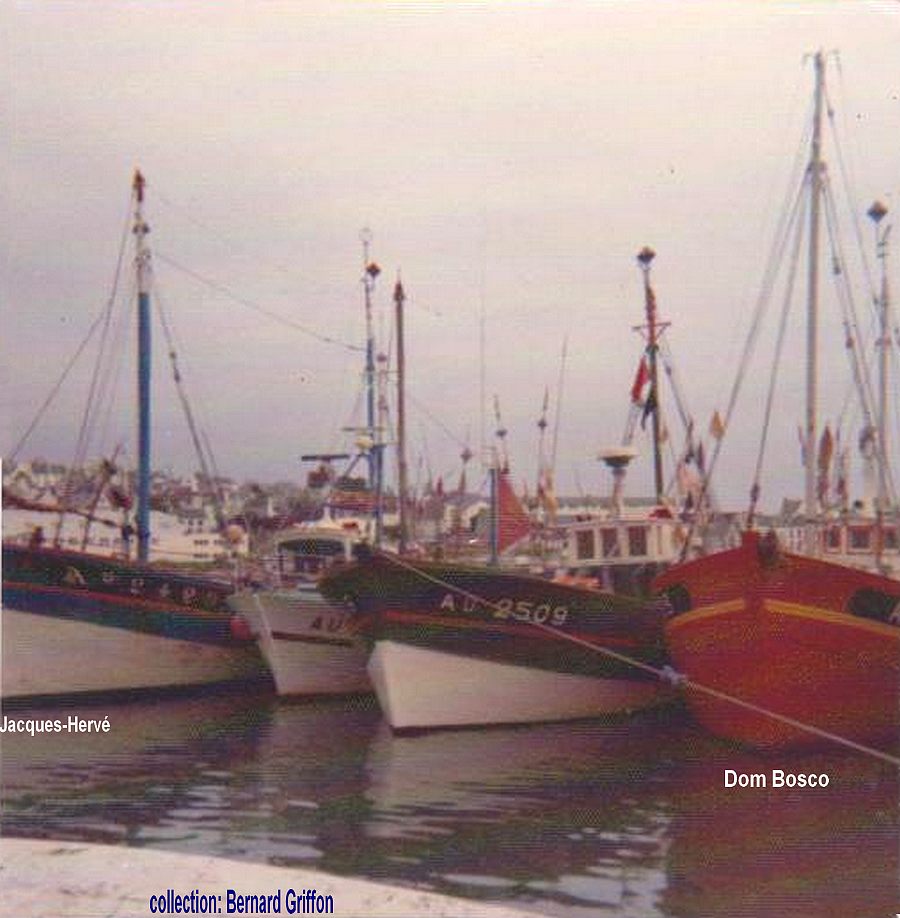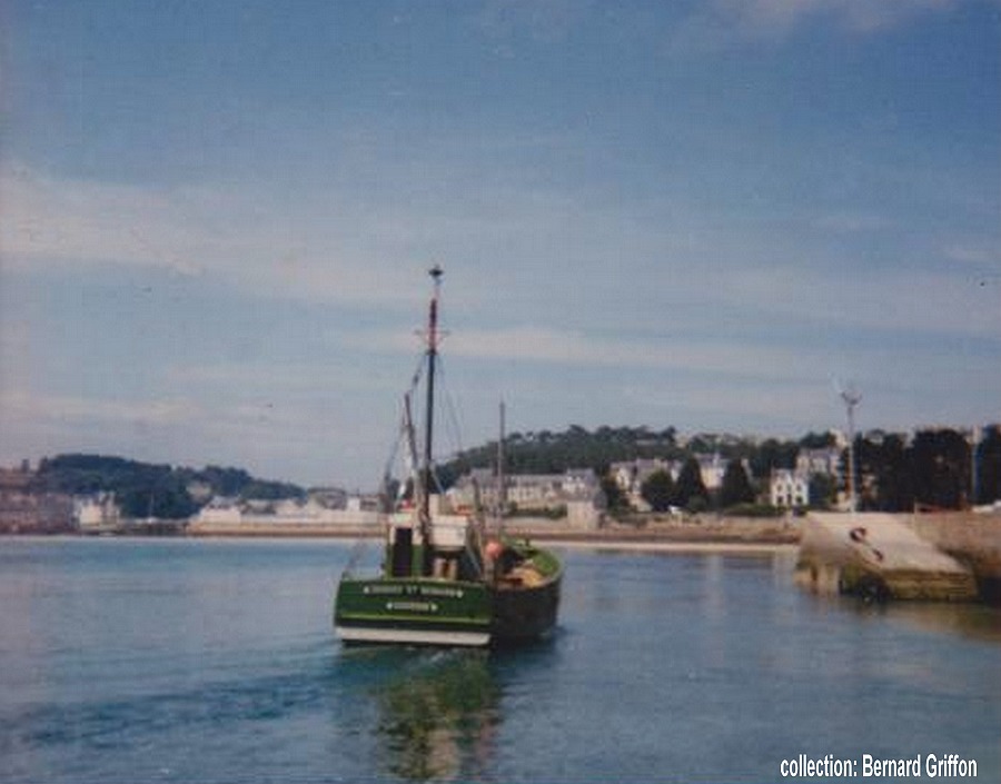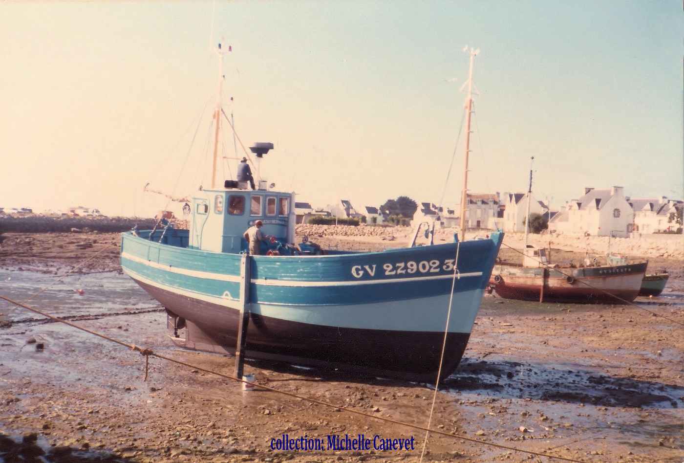 Ce bateau avait été, à l'origine construit pour un patron sénan qui n'a put aller au bout de son projet et Pierre Griffon qui voulait faire construire un bateau au chantier camarétois s'en est porté acquéreur, le bateau était alors pratiquement prêt à être lancé, il ne restait plus qu'à le baptiser, les prénoms des enfants du patron convenant parfaitement. |