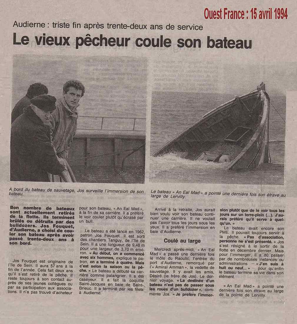 "Ann Eal Mad", remorqué par l'Amiral Amman a fini sa carrière , "océanisé" au large de Lervily en avril 1994