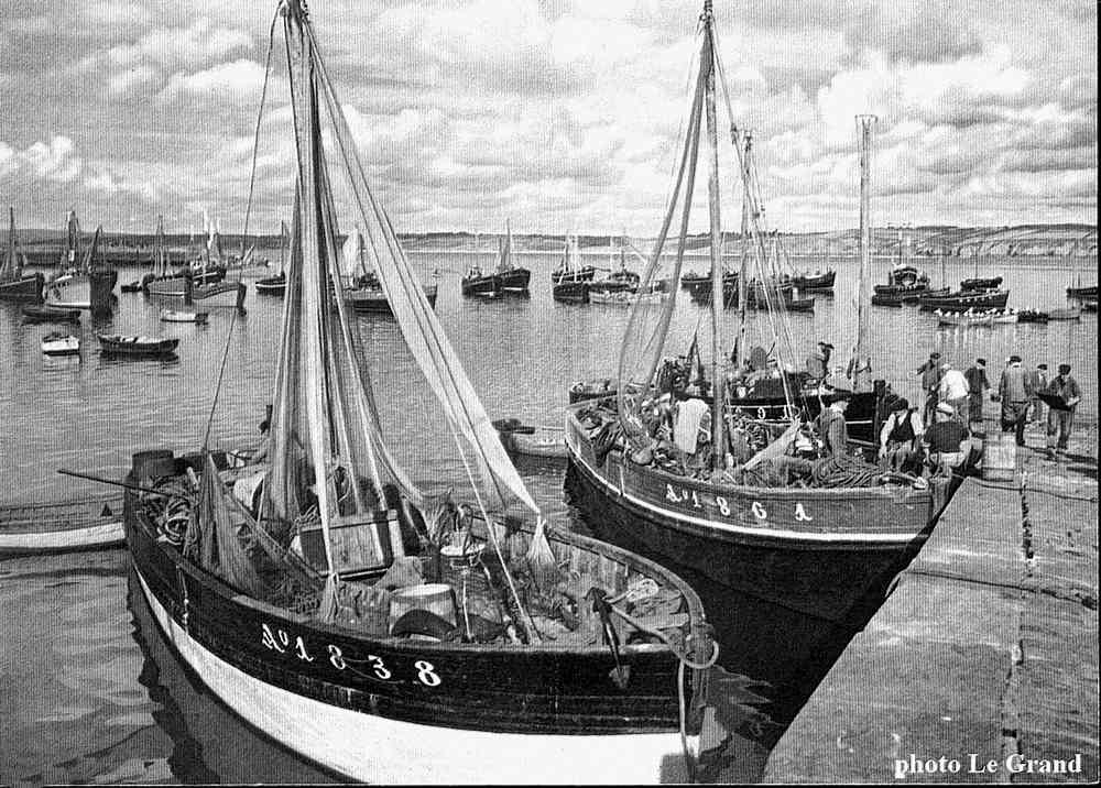 | débarquement de la sardine à Douarnenez avec Santez Anna | retour à Audierne après une journée à la sardine, sur l'avant tribord, le "Lapart Bihen" au mouillage |