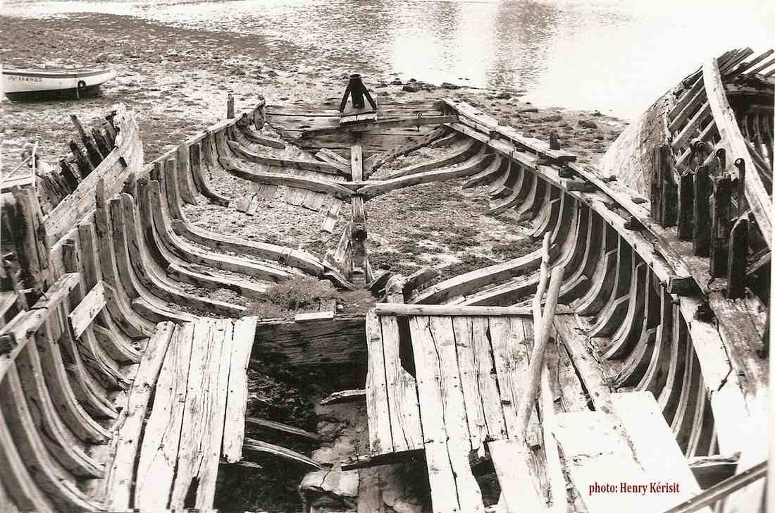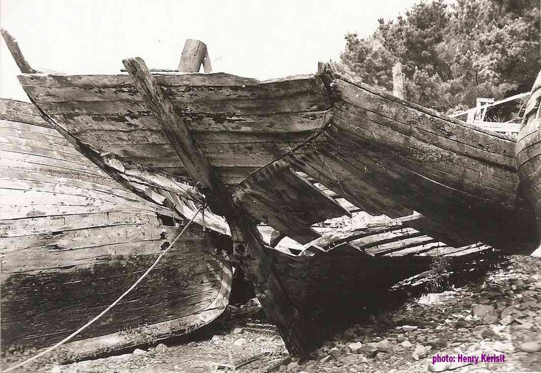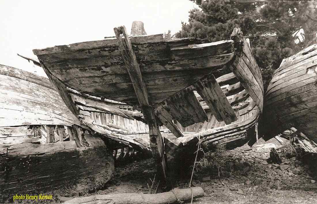 Belles photos (1982) de Ar Vigouden à l'état d'épave mais on peut encore admirer la voûte imposante de ces sloops. |