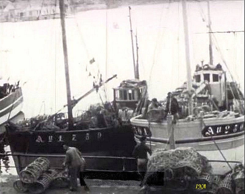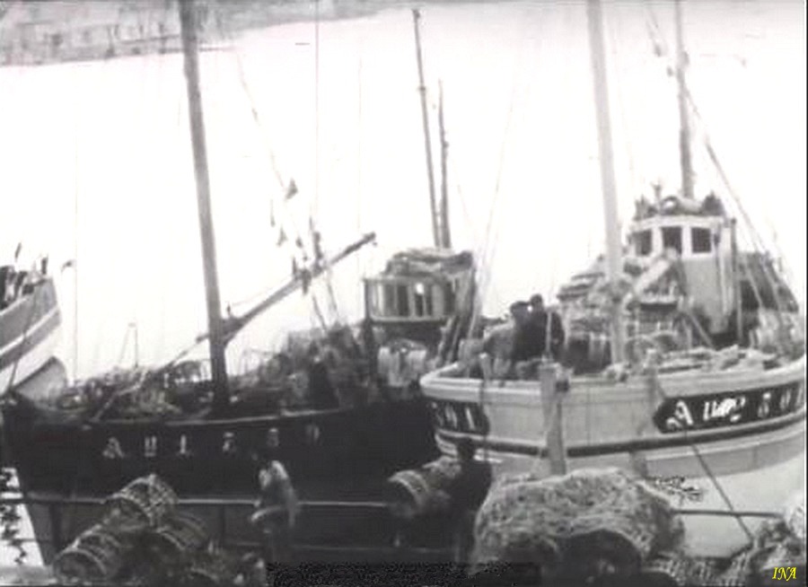 | images figées tirées du film "La pêche aux langoustes sur le Stalingrad en 1952" | ||||