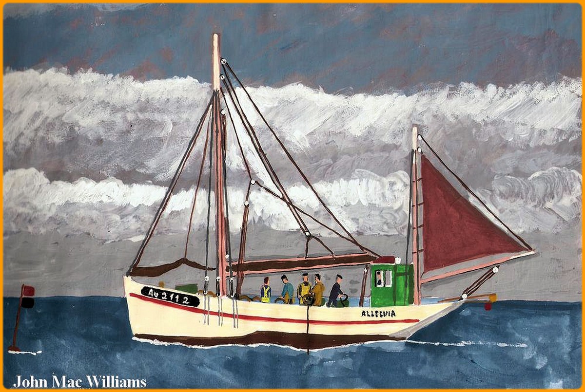 "Alleluia" venait de Camaret ( CM 2363 ) où il était gréé en sloop, il pratiquait déjà la pêche à la langouste sur les côtes anglaises et relâchait parfois à Saint Ives. |