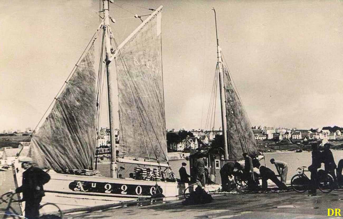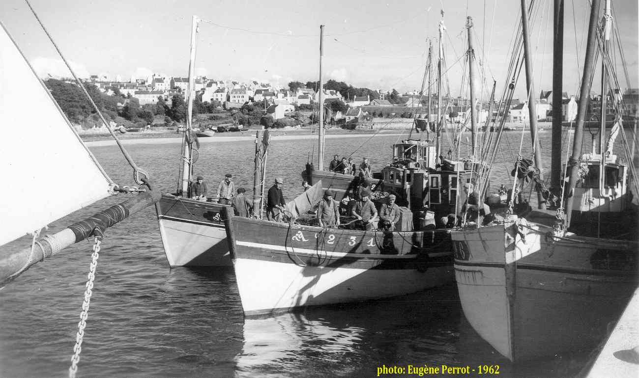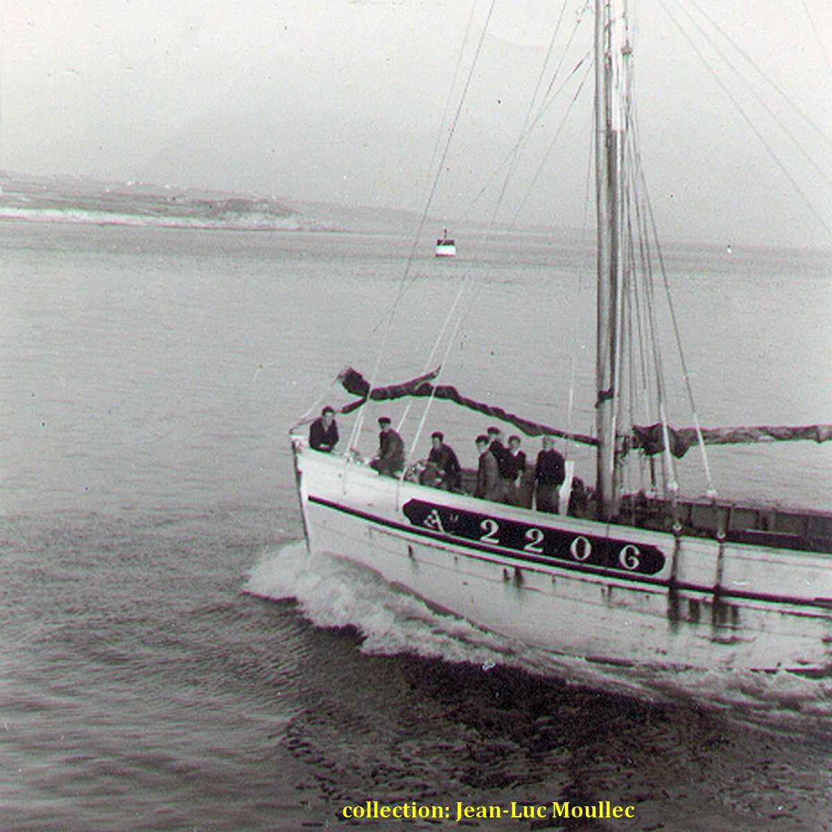 à noter sur les deux photos centrales, l'importante voilure que portait encore ces bateaux à une certaine époque qui se situe vers le milieu des années 50 environ |