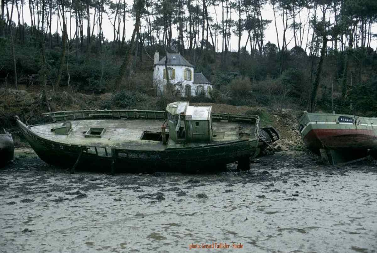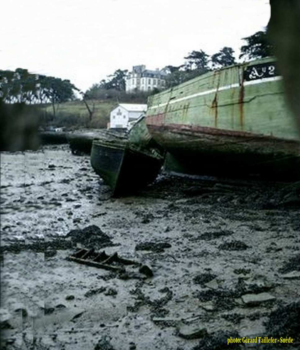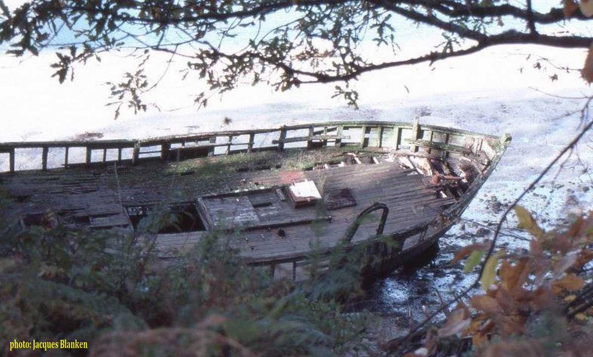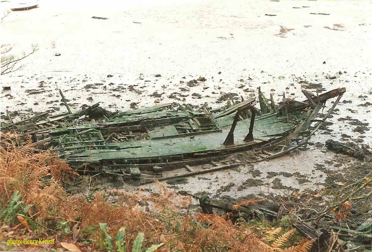 | année après année, le temps a fait son oeuvre, le bateau s'est peu à peu affaissé sur lui-même et les derniers temps, seule apparaissait encore sur la vase une potence, dernier vestige de Lapart Bihan II |