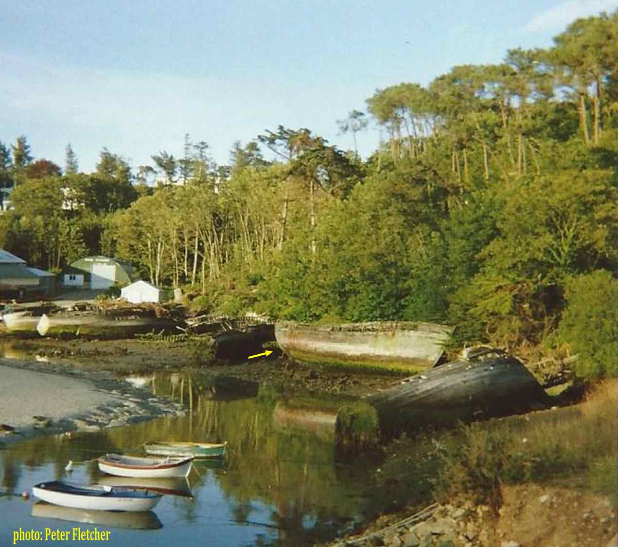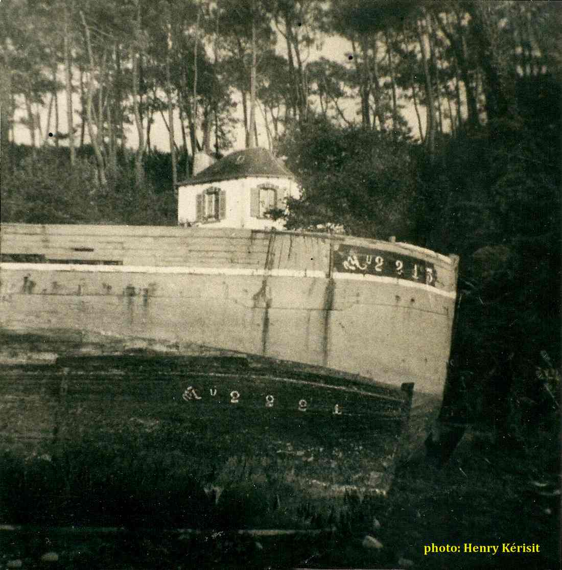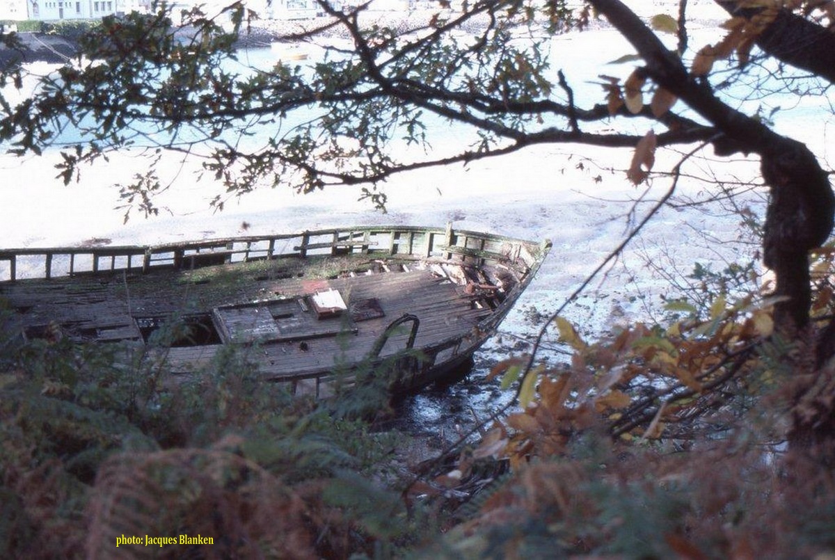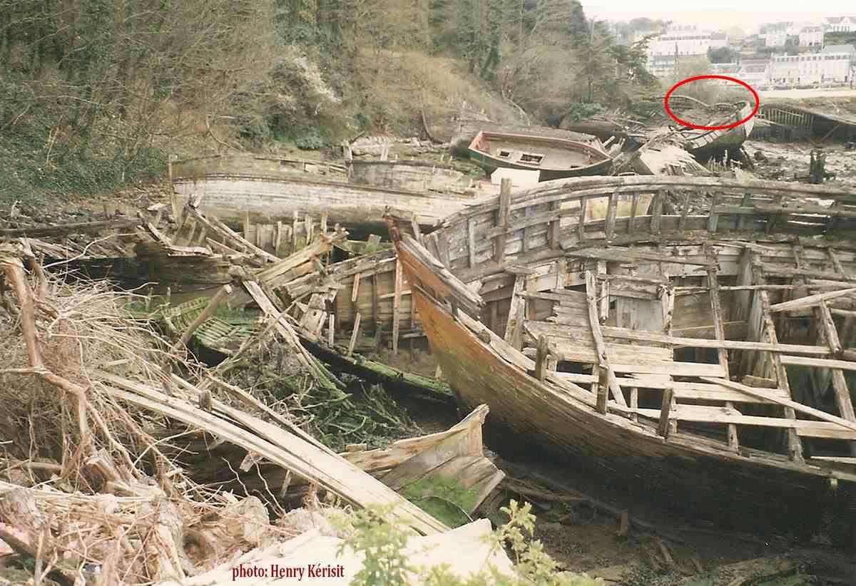 | année après année, le temps a fait son oeuvre, le bateau s'est peu à peu affaissé sur lui-même et les derniers temps, seule apparaissait encore sur la vase une potence, dernier vestige de Lapart Bihan II |
