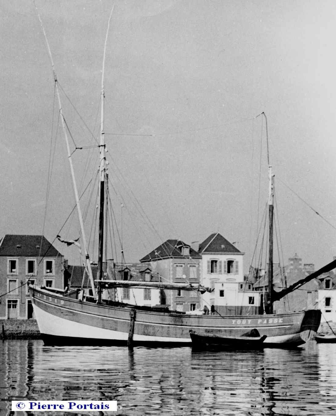 "Tout Passe" a été le plus grand bateau jamais construit à l'île de Sein. Ce fut d'ailleurs un peu l'attraction du moment, certains marins, à ce qu'il m'a été rapporté, se demandant même si le chantier aurait pu le lancer , c'était sans doute mal connaître Félix Tanguy et ses compagnons qui pour l'occasion avaient déployé des trésors d'ingéniosité. D'ailleurs à quelqu'un qui lui posait cette question, le père "Félis" avait répondu: "Si on ne peut pas le lancer ici, on ira le lancer à Tréboul"....