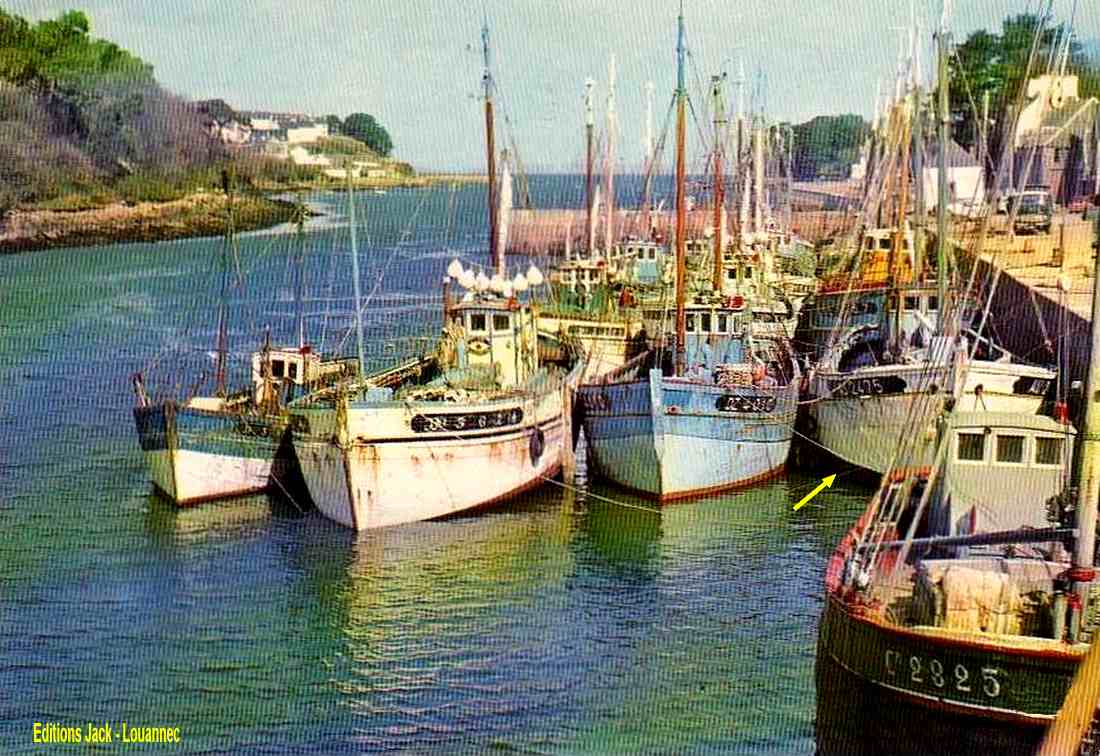 | En 1959, Jolie Camarétoise avait tenté l'aventure de la langouste verte sur les côtes de Mauritanie, mais cette expérience fut un échec et le bateau allait ensuite être désarmé à Marseille, où Marcel Gloaguen ira le prendre en fin d'année 59 pour l'amener à Audierne. |