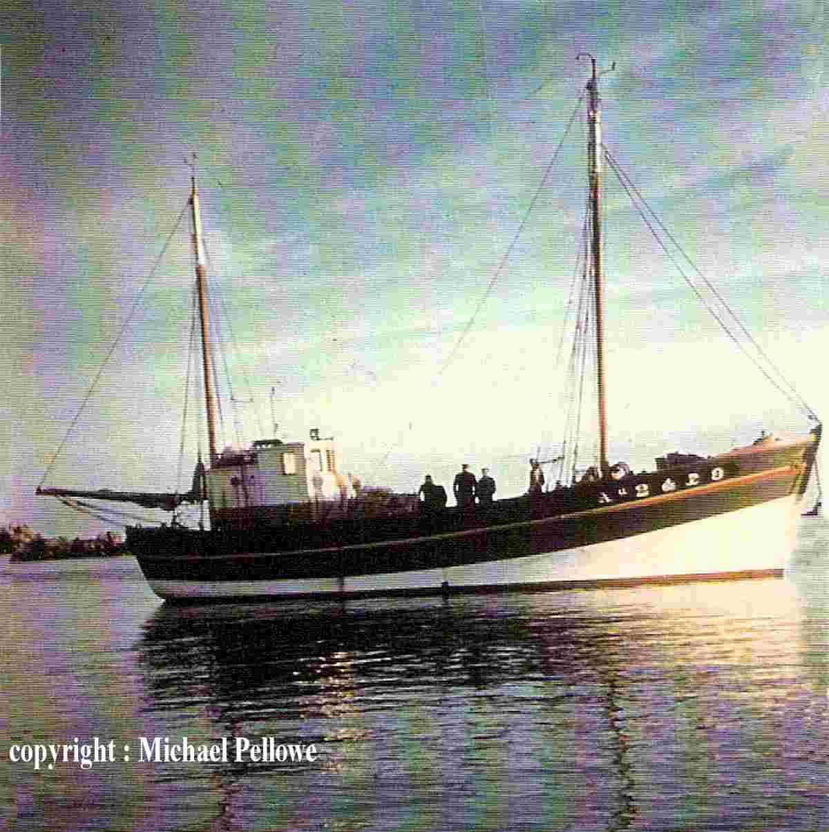Ci-dessus, photographié par Michael Pellowe au mouillage aux îles Scilly, "Le Cap" ne se doutait pas qu'une vingtaine d'années après, repeint aux couleurs bleues de la "Harvey and Sons", il viendrait faire naufrage dans ces mêmes parages