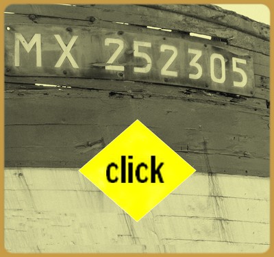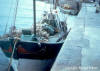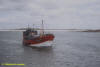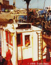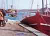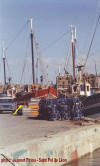 accostage à Moguériec, le père Tanguy à l'avant, le fils à la passerelle. |