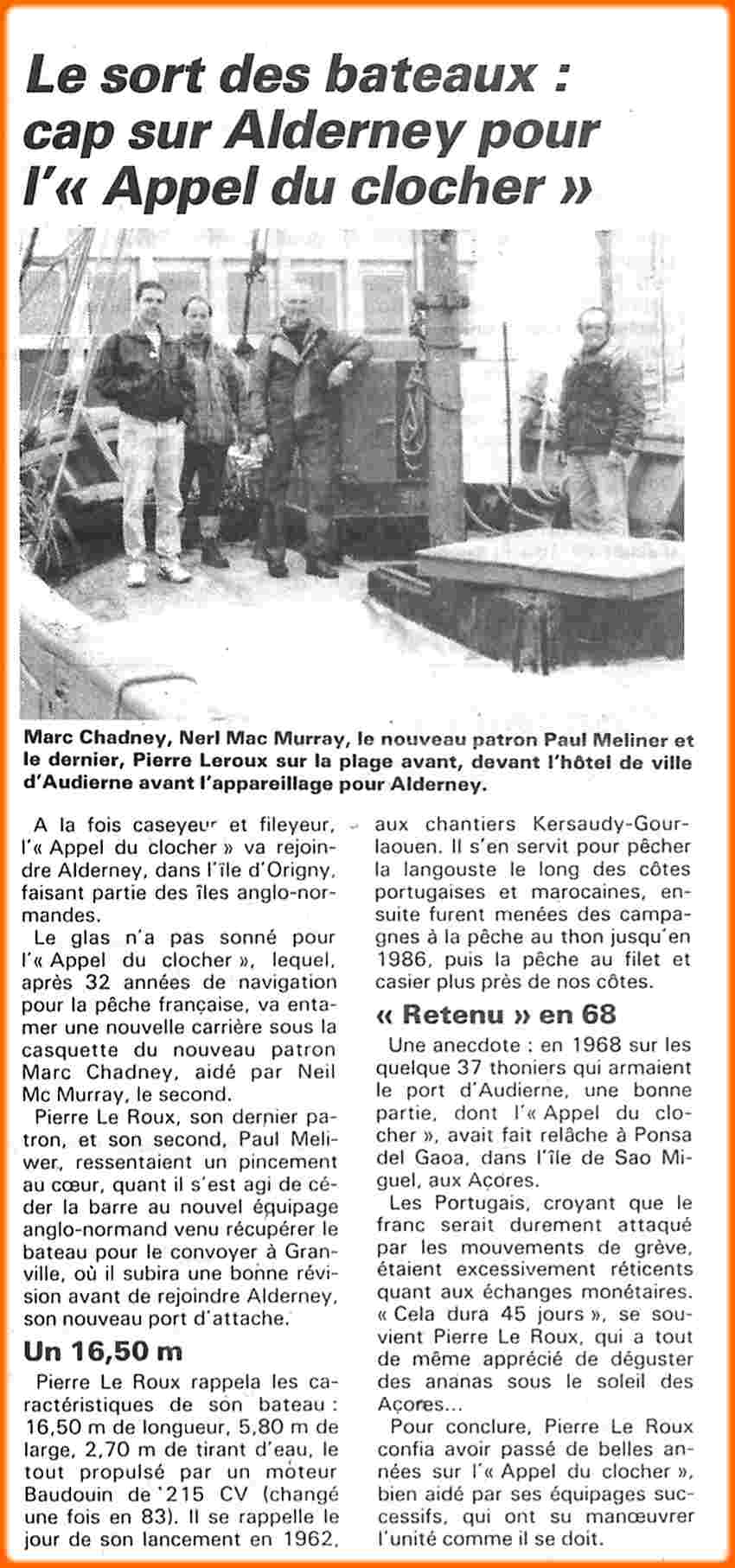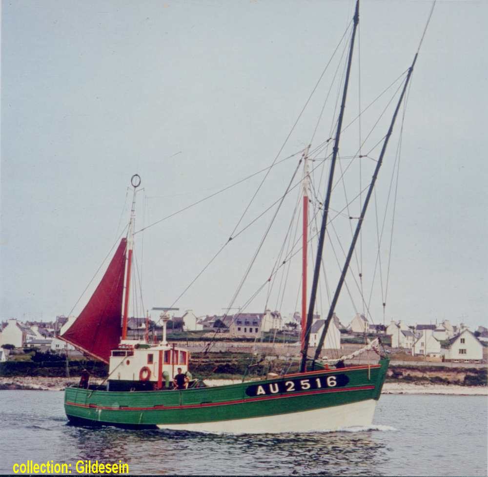 "Appel du Clocher" avait conservé son élégance de formes du neuvage, sans doute parce que n'ayant pas été doté d'un gaillard à l'avant ( du moins jusqu'à son départ définitif d'Audierne pour Guernesey ) |