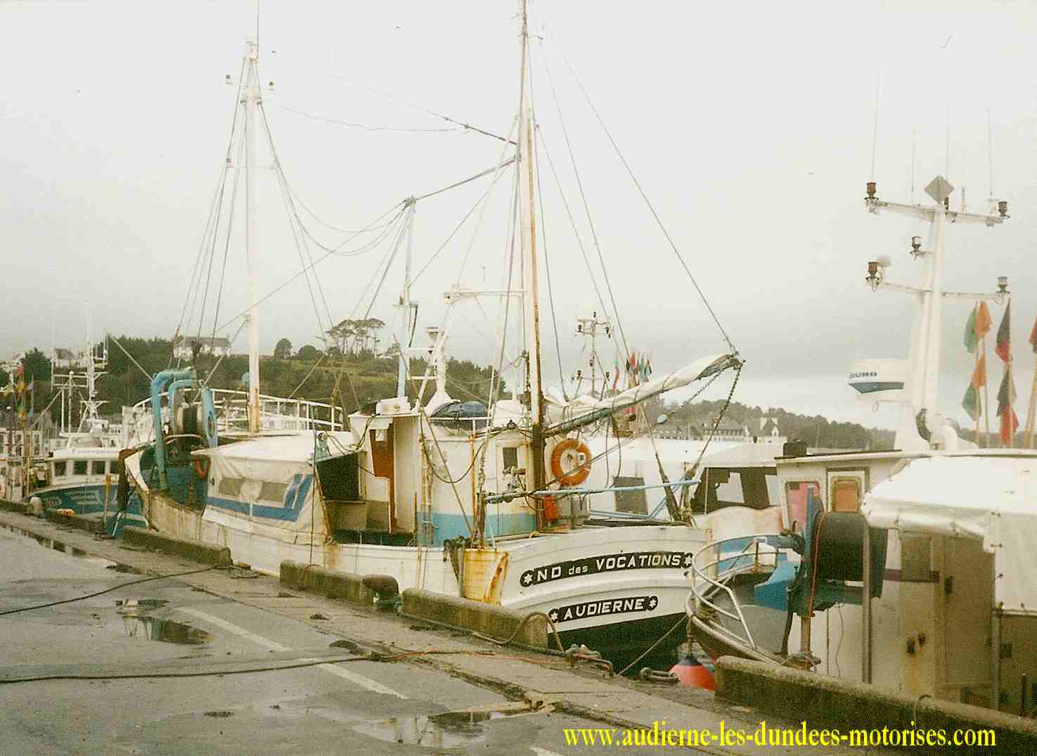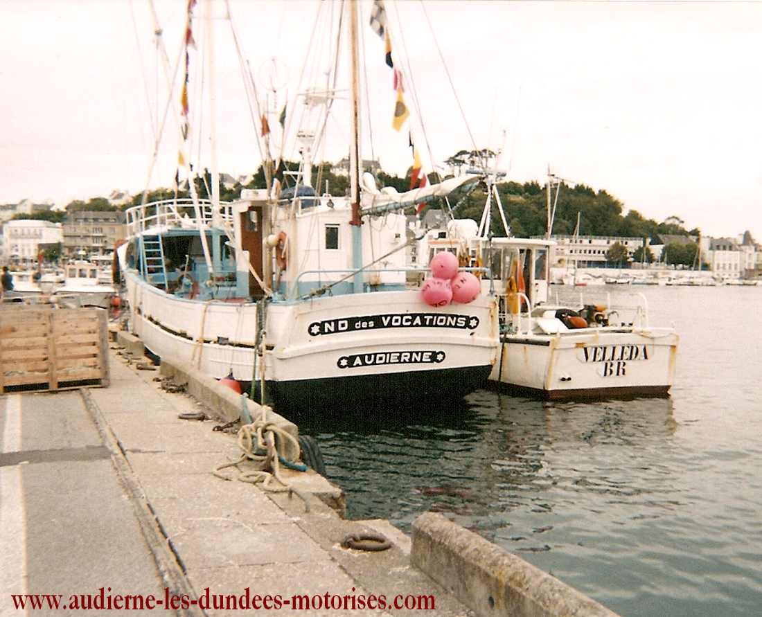 "ND des Vocations" a rejoint la collection à flot du port musée en 2003, on a pu le voir encore naviguer en baie de Douarnenez lors des fêtes maritimes de 2006, mais il n'a plus repris la mer depuis ce temps, et son destin semble maintenant scellé au ponton du port musée où il est amarré |