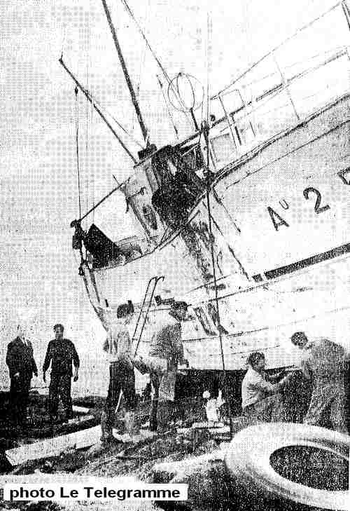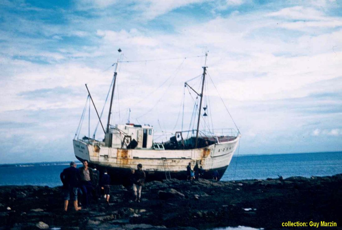 Suite vraisemblablement à une confusion des feux d'alignement de l'entrée du port de Loctudy, "Claude Alain" s'est échoué sur le plateau rocheux face au feu de Langoz le 14 octobre 1966 à 6 heures, sans faire de victimes mais subira d'assez importants dégâts à cause notamment de la forte houle qui sévissait ce jour là. Il sera impossible de le tirer de sa fâcheuse position et le chalutier sera définitivement perdu. Le bateau est resté planté sur les roches de Langoz jusqu'à la fin des années 70 |
