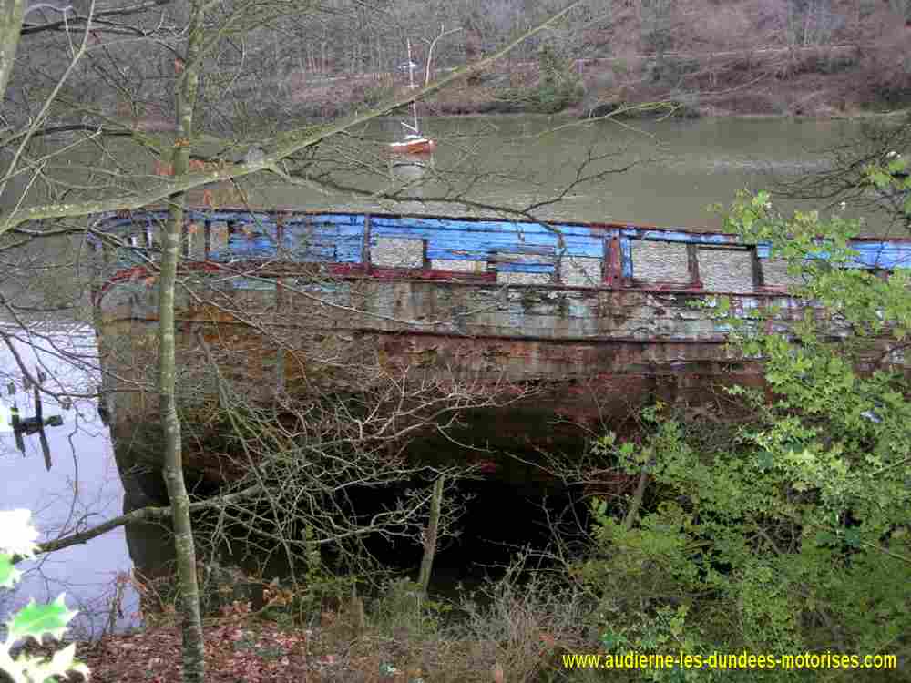mars 2010, l'épave s'est dégradée, le bloc passerelle s'est désolidarisé du pont et gît dans l'eau sur tribord...