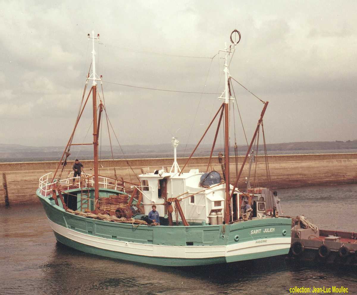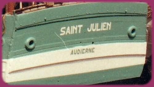| construit pour le compte de Eugène Savina de Saint Guénolé Penmarc'h, ce bateau s'est d'abord appelé "Bibelot" (GV 8103) avant de devenir "Saint Julien" à 'Audierne | |||||
