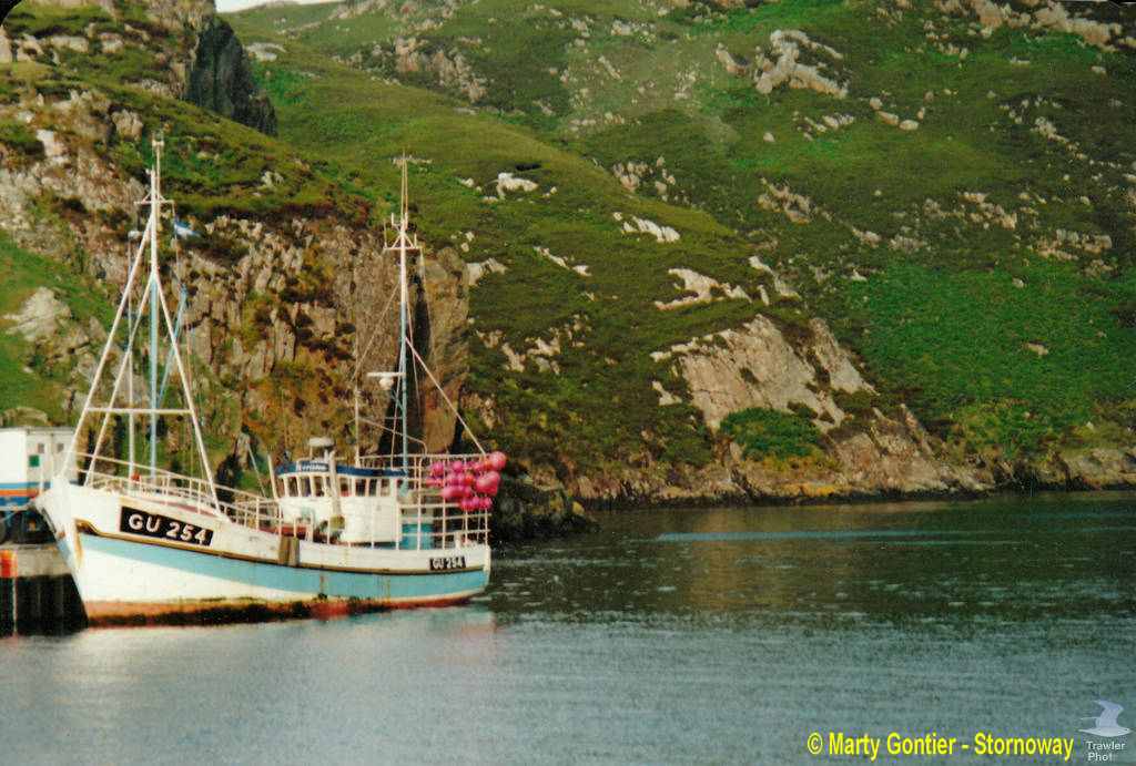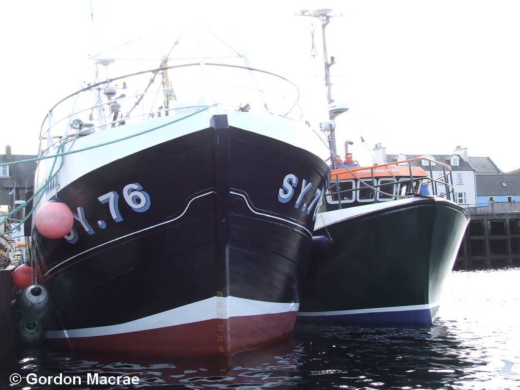 pêcher le crabe à partir d'Ullapool. Repris par Rick Michelmore, il est passé au port de Darmouth sous le N° DH 181 de juillet 1994 à juillet 2002. Ensuite, avec Andrew Cowie il a été enregistré sous le N° BCK 77 ( Buckie) jusqu'en mai 2008. Depuis mai 2008, repris par Martyn Gontier il est immatriculé SY 76 ( Stornoway ), pêche toujours le crabe et continue à porter le nom que lui avait donné Henri en 1963... |