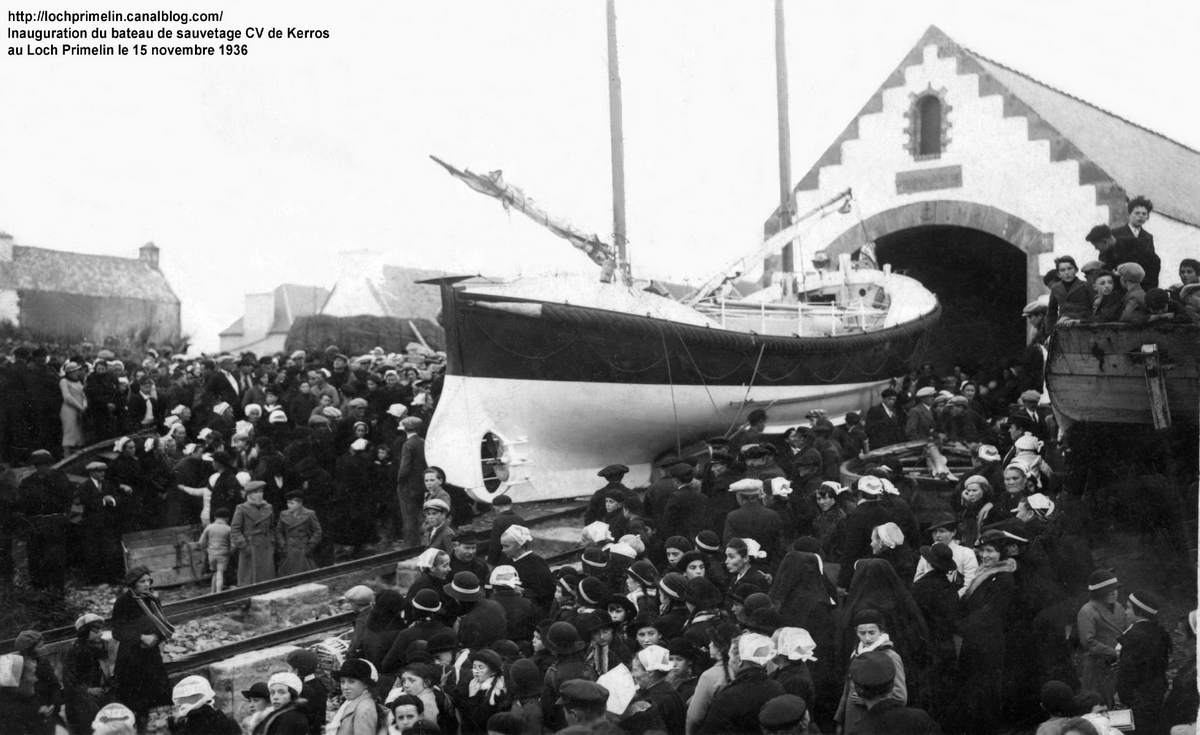 | la foule au rendez-vous pour le baptême du CV Kerros au port du Loch le 15 novembre 1936 | |||||