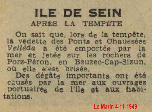 En 1949, La Helle (ex Velléda I) revient à Sein pour remplacer Velléda II et