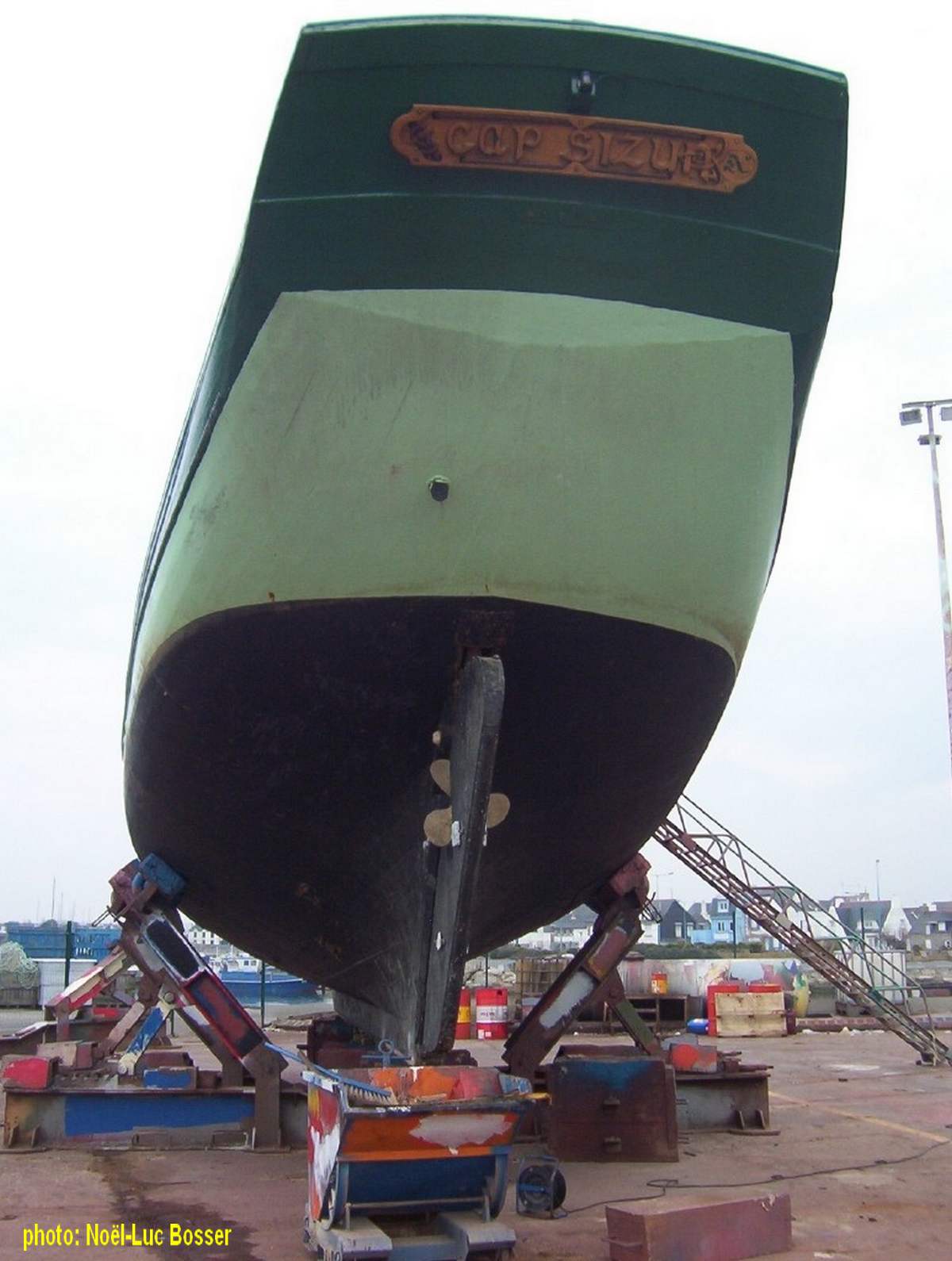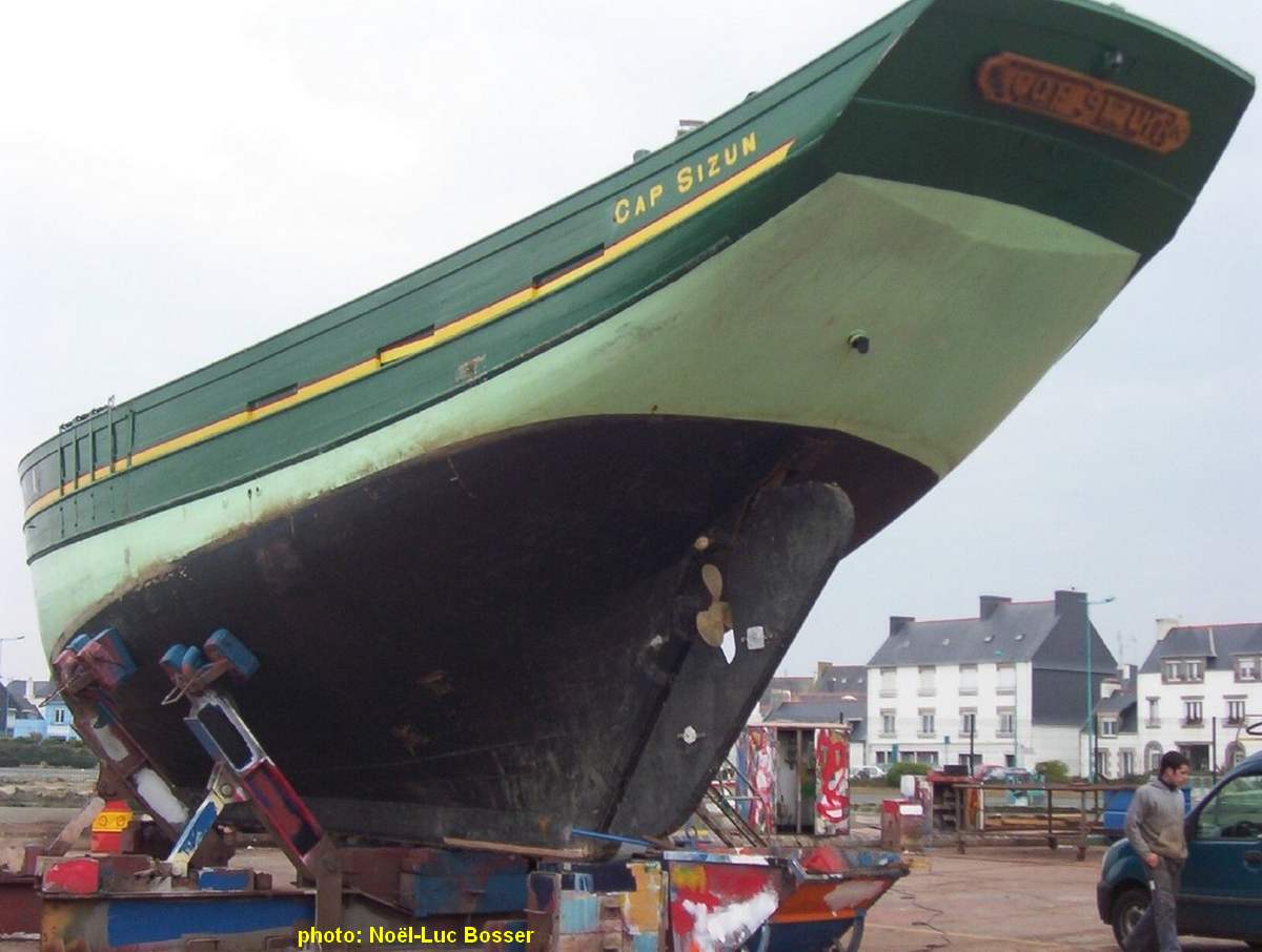 | carénage sur le port du Guilvinec, ce qui donne l'occasion d'admirer la pureté de ses lignes, dont le galbe audacieux de la voûte | |||||