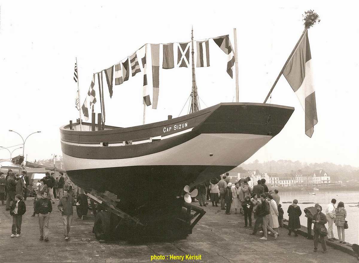 | "Cap Sizun" avait été acheminé par la route sur remorque au port d'Audierne, où l'on avait procédé à sa mise à l'eau | |||||